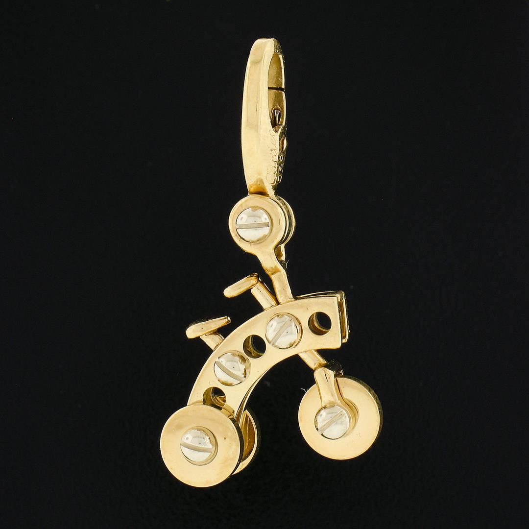 A solid 18k yellow gold charm pendant by Cartier. The pendant weighs a total of 4.85 grams, measures 27.8x14mm including the bail, and the inside of the bail measures 4.5x3mm.