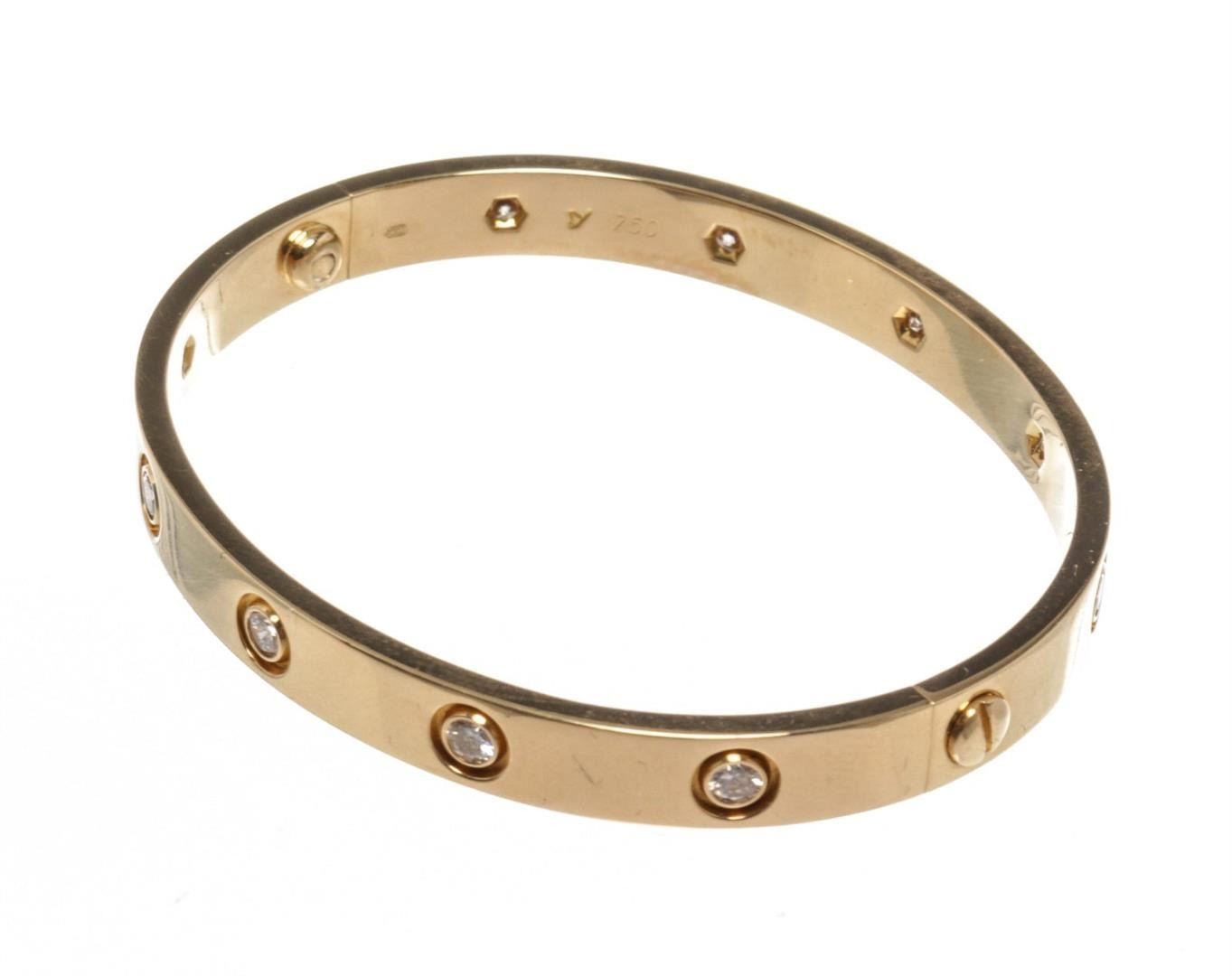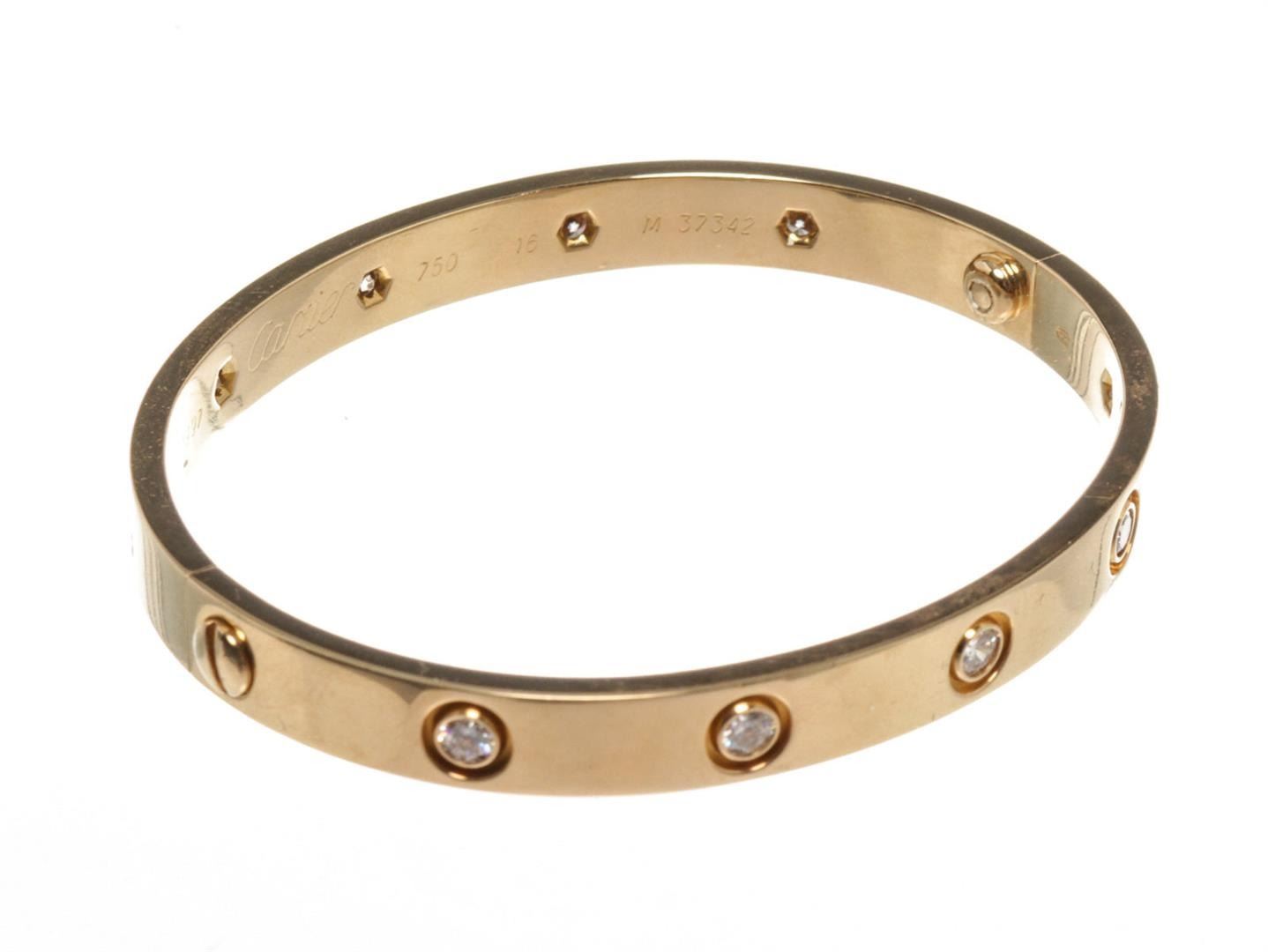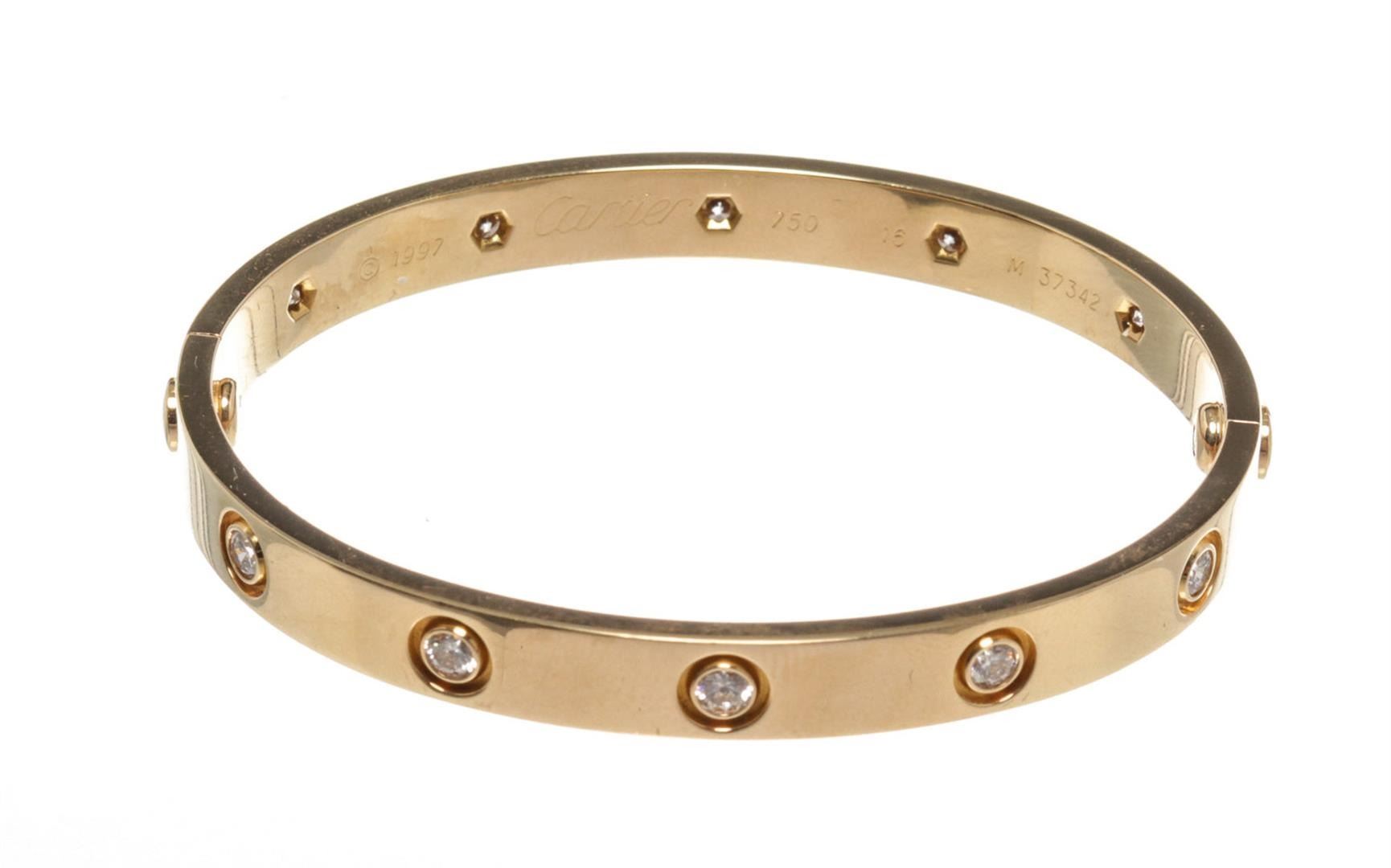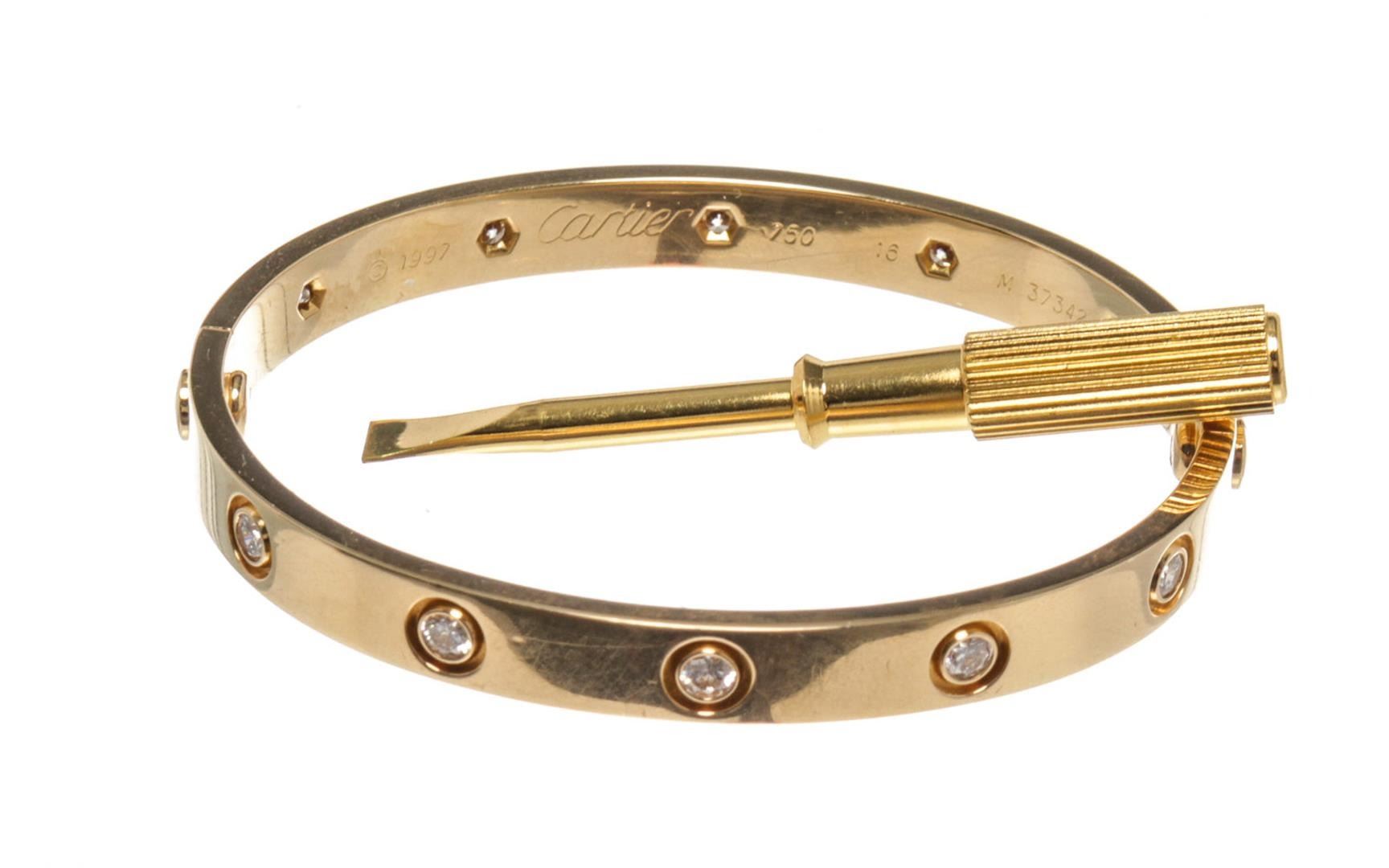 One Cartier Gold Diamond Love 10 Bracelet. Item is sold AS-IS. All available information is listed in the description and shown in the photo. Cartier Gold Diamond Love 16 Bracelet with gold-tone hardware. Dated in 1997 having the older screws. Comes with the screw but no box. M37342