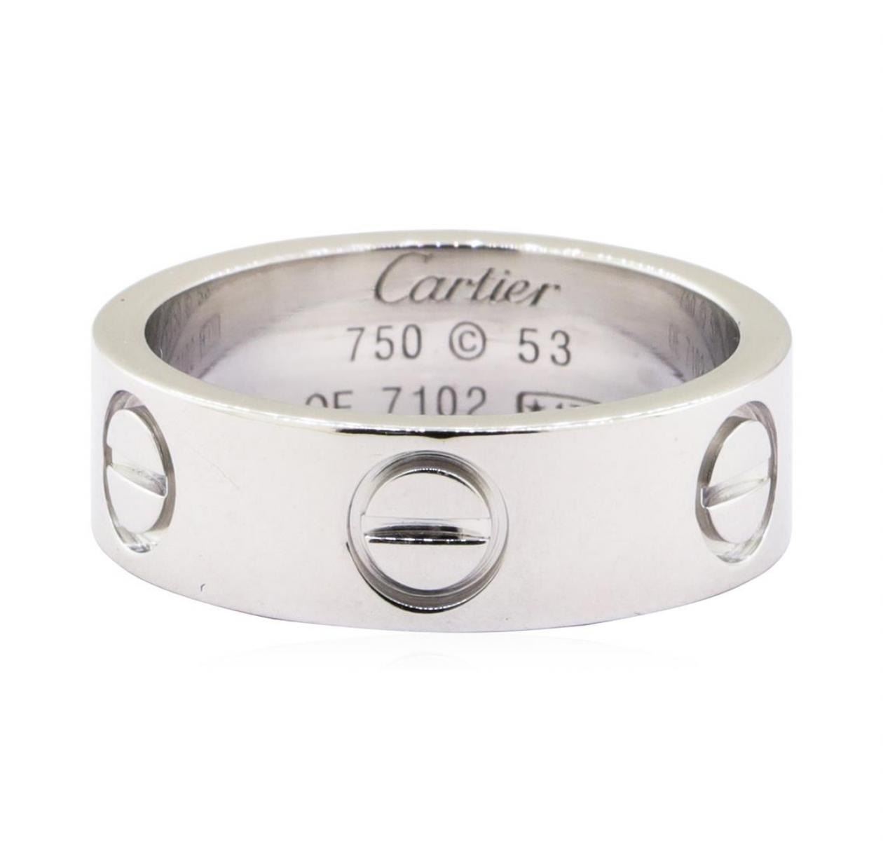 One Cartier Love ring with serial number OE 7102 with finger size 53 featuring: 18KT white gold weighing 7.6 grams.