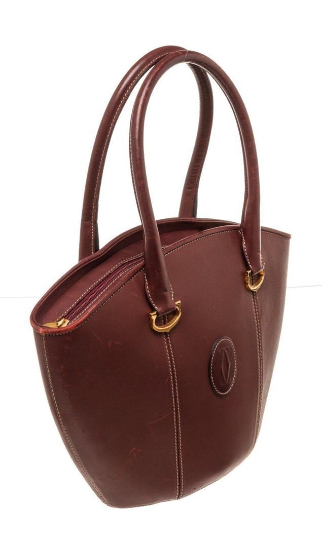 Cartier Red Leather Must de Cartier Shoulder Bag. All available information is listed in the description and shown in the photos. Red leather Cartier Must de Cartier shoulder bag with gold-tone hardware, dual rolled leather straps, a top zip closure, red logo jacquard lining, an interior zip and slip pocket. Size (HxWxD): 25cm x 20cm x 10cm / 9.84'' x 7.87'' x 3.93'', Handle Length: 44cm / 17.32''