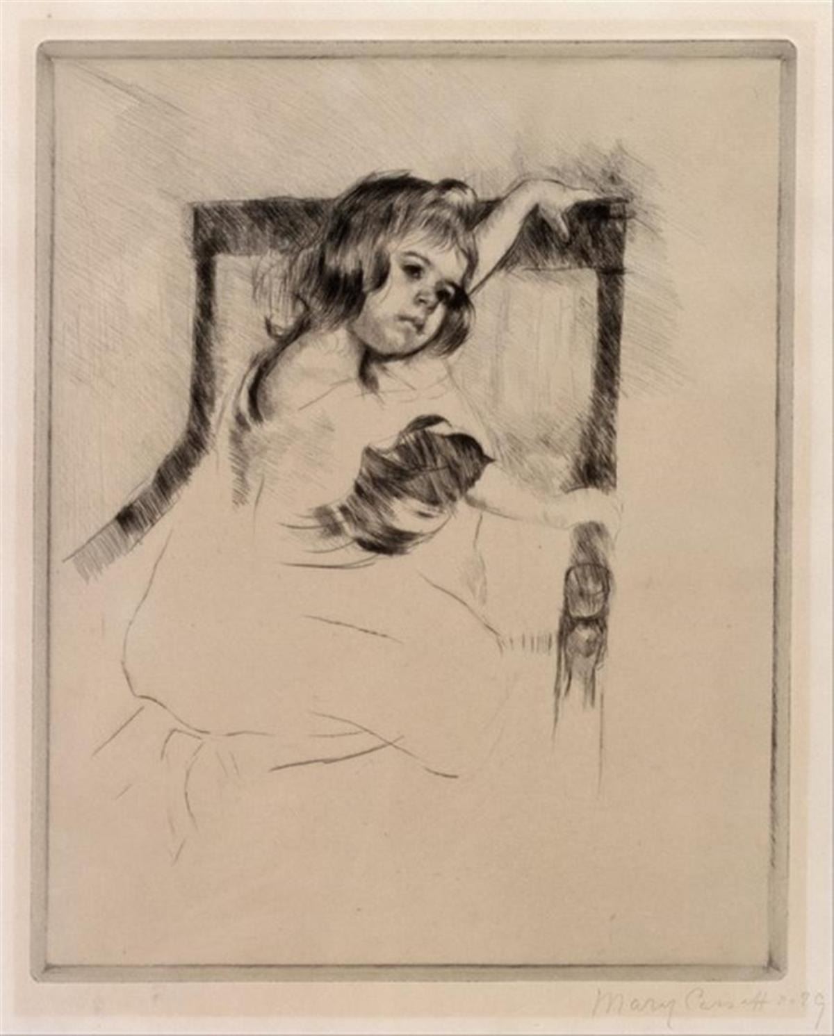 Artist: Mary Stevenson Cassatt (b. 1844 - 1926) - Title: Kneeling in an Armchair - Medium: Fine Art Reproduction Giclee on Canvas - Image Size: Approximately 32 inches x 25.75 inches - Framed: Unframed on Unstretched Canvas - Biography:Born on May 22, 1844, in Allegheny City, Pennsylvania, Mary Cassatt was one of the leading artists in the Impressionist movement of the later part of the 1800s. Moving to Paris, her home for the rest of her life, she was befriended by Edgar Degas. After 1910, her increasingly poor eyesight virtually put an end to her serious painting, and she died in 1926. -