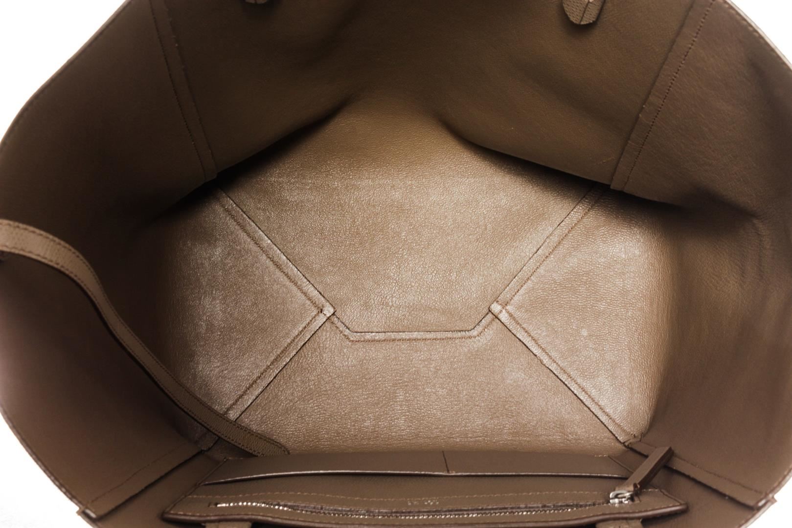 Celine Beige Calfskin Leather Cabas Horizontal Phantom Tote Bag. All available information is listed in the description and shown in the photos. Beige Calfskin leather Celine Cabas Horizontal Phantom tote bag with an open top, two long top handles, internal logo patch, internal zip pocket, tonal leather lining, silver-tone hardware and rectangle body. 5.9"x11"x9.8" 5.9"x11"x9.8"
