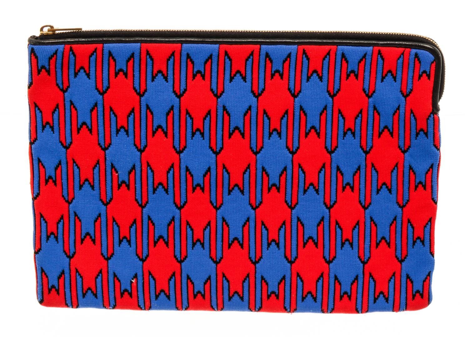 One Celine Blue, Multicolor, Red Fabic Houndstooth Zip Pouch. Item is sold AS-IS. All available information is listed in the description and shown in the photo. celine blue, multicolor, red fabic houndstooth zip pouch with silver tone hardware, interior pocket, zip closure. Height: 21.09 cm (8.3 in), Width: 27.94 cm (11 in), Depth: 5.08 cm (2 in)