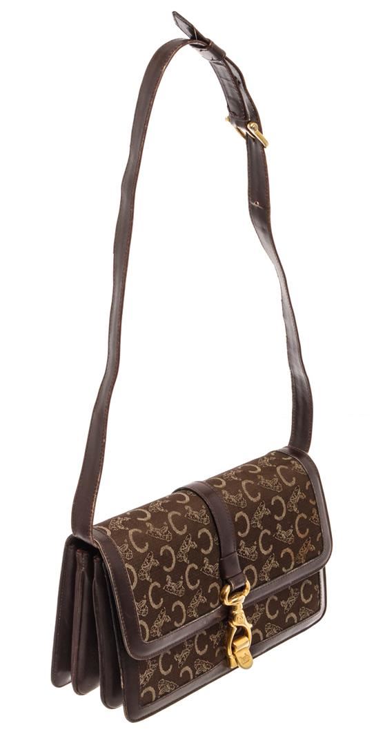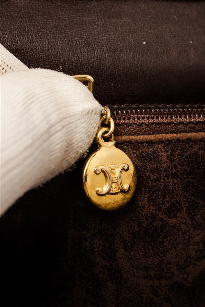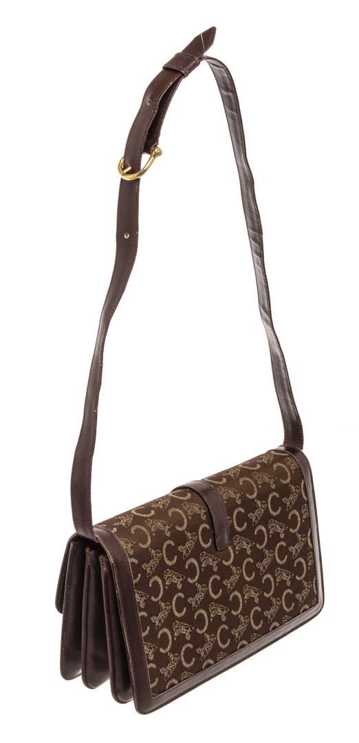 Celine Brown Canvas C Macadam Shoulder Bag. All available information is listed in the description and shown in the photos. Celine Brown Canvas C Macadam Shoulder Bag with gold-tone hardware, adjustable leather shoulder strap, Flap closure.