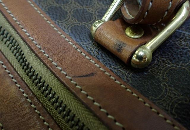 One Celine Brown Macadam Coated Canvas Leather Vintage Duffle Bag. Item is sold AS-IS. All available information is listed in the description and shown in the photo. Macadam