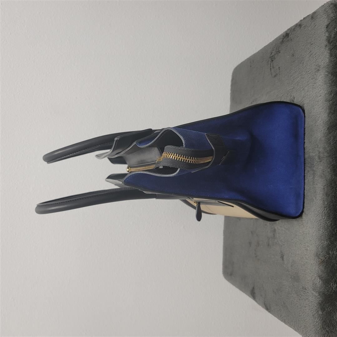 One Celine Tri-Color Leather Mini Luggage Tote Bag. The mini Luggage tote from Celine is one of the most popular handbags in the world. This tri-color tote is crafted from leather. It comes with rolled top handles, and a front zip pocket. The bag is equipped with a well-sized leather and nubuck interior for you to carry your essentials. Say hell to your new favourite handbag! Exterior material: Leather, Interior material: Leather and Nubuck, Hardware: Gold Tone, Production yearL 2014, Origin: Italy