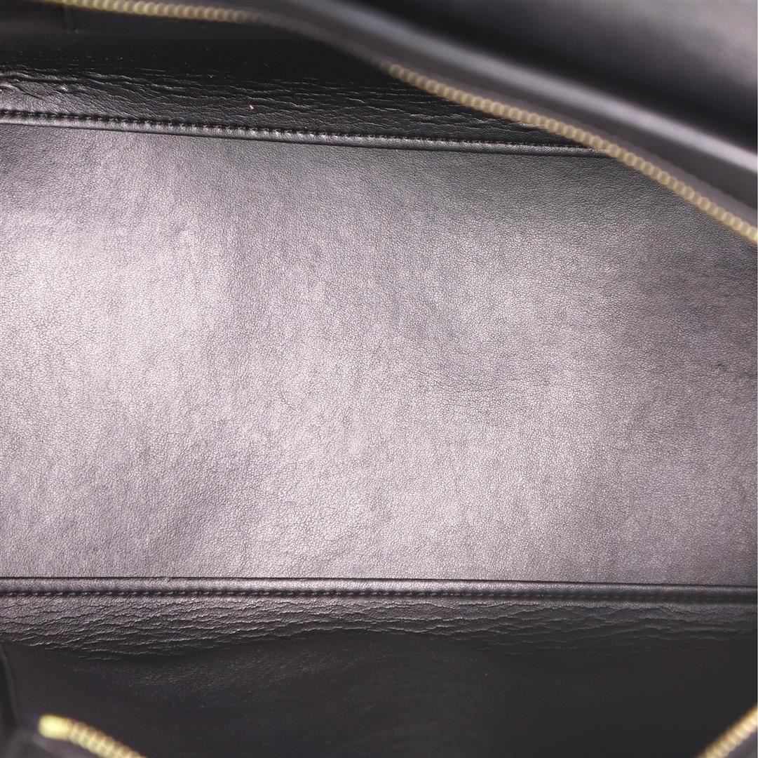 Celine Tricolor Trapeze Bag Suede Medium Neutral. All available information is listed in the description and shown in the photos. Celine Tricolor Trapeze Bag Suede Medium Beige Bluie Leather Condition Details: Moderate creasing, wear and scuffs on exterior and underneath flap, darkening on flap. Minor cracking on handle wax edges, scratches on hardware. Height 10", Width 12", Depth 6.5", Strap Drop 14