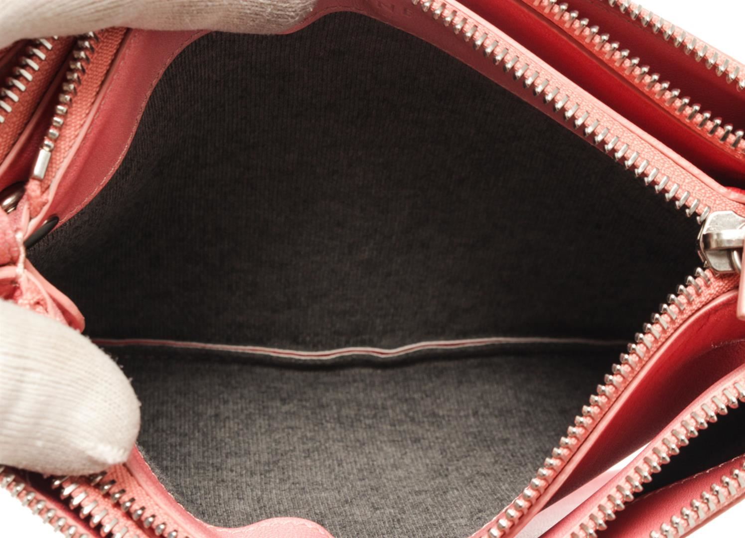 Celine Trio Ombre Leather Small Crossbody Bag. All available information is listed in the description and shown in the photos. Celine Trio Ombre Leather Small Crossbody Bag with adjustable shoulder strap, three zipper closure, silver tone hardware, jersey grey lining. Height 6", Width 8.5", Depth 2", Strap Drop 18-24" / 15.24 x 21.59 x 5.08CM