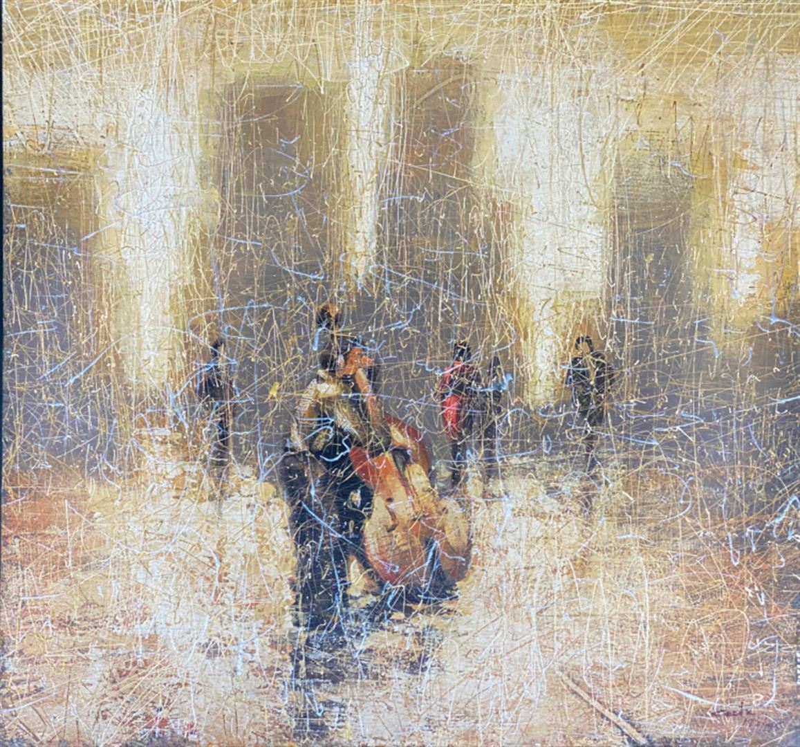 Center Stage by Cecil K. Limited Hand Signed Embellished Giclee on Canvas Stretched. Dimensions: 24 x 24. Excellent Condition.