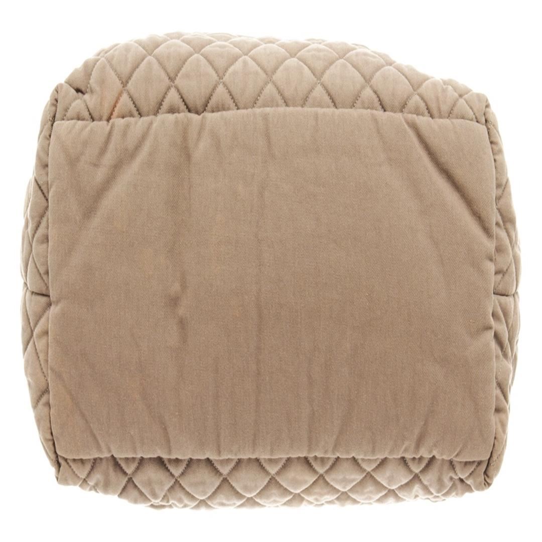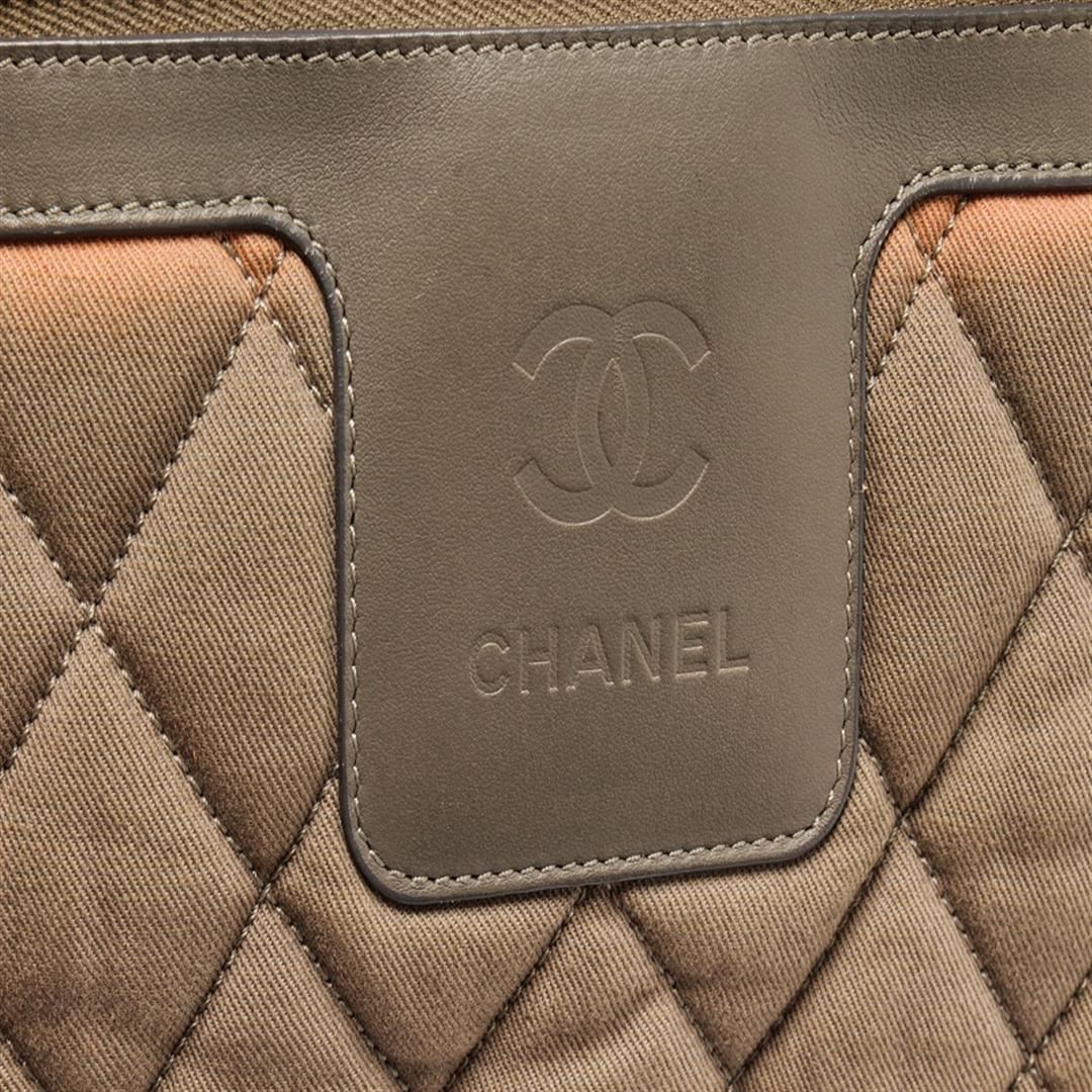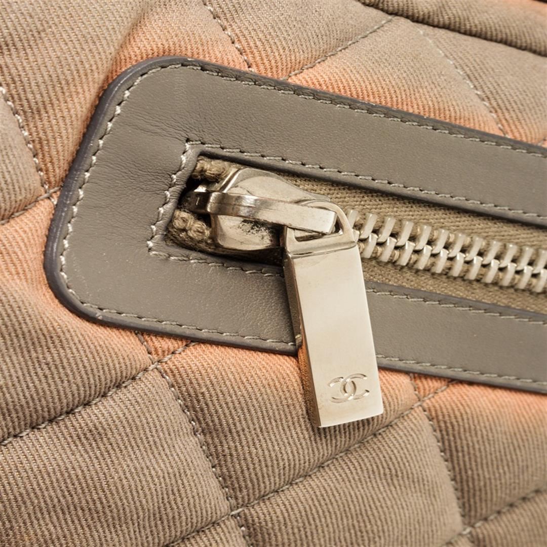One Chanel Beige Quilted Coco Cocoon Tote Bag. Item is sold AS-IS. All available information is listed in the description and shown in the photo. Chanel beige quilted Coco Cocoon tote bag with nylon exterior, red nylon lining, nude leather squares on the base of the straps and around zippers, one exterior zip pocket, one interior zip pocket, silver-tone hardware, zipper closure, and top handles. There is some fading on the exterior of the canvas as shown in pictures. Height: 9.85" Width: 17.72" Depth: 7.09", Handle Drop: / 25 x 45 x 18 Cm