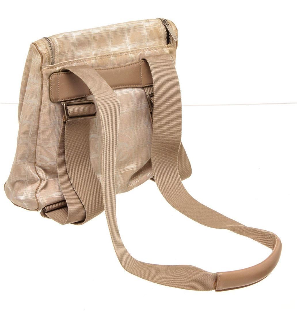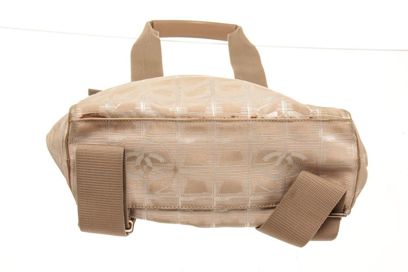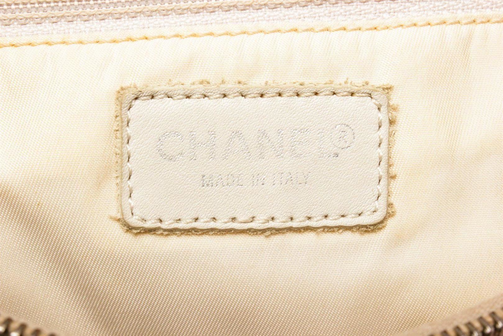 Chanel Beige White Canvas Small CC Sportlir Shoulder Bag with canvas, gold-tone hardware, exterior zip pockets, interior slip pockets, shoulder strap and zipper closure.