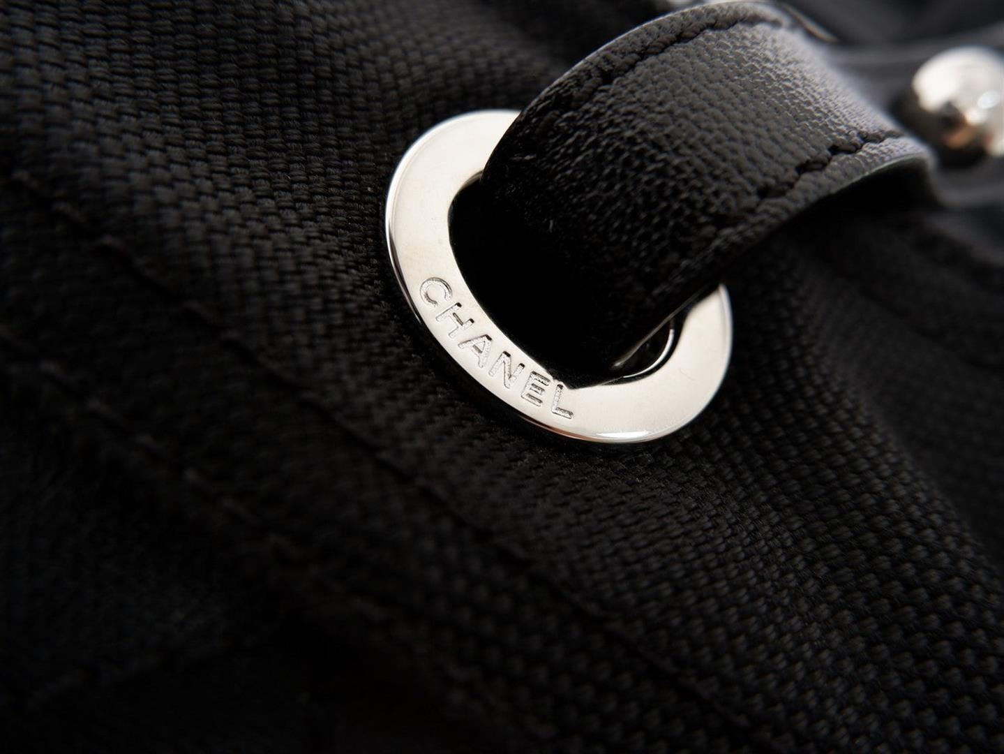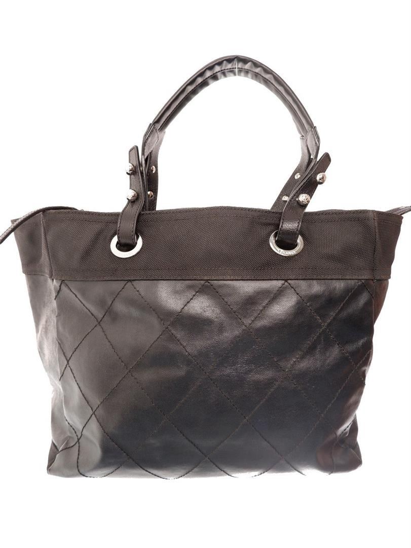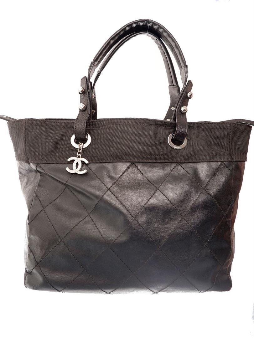 Chanel Biarritz Bag Tote. Brand: Chanel, Style: Biarritz Bag, Type: Tote, Exterior color: Black, Exterior material: Leather, Interior color: Black, Interior material: Canvas, Length: 13, Width: 6, Height: 12. Item is sold AS-IS and all information pertain