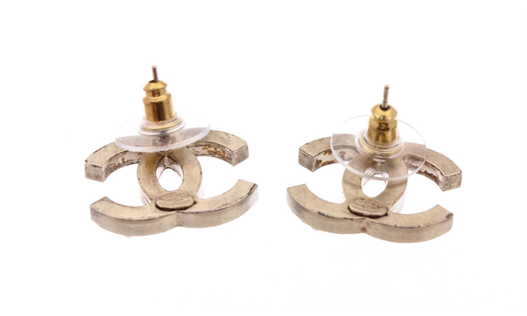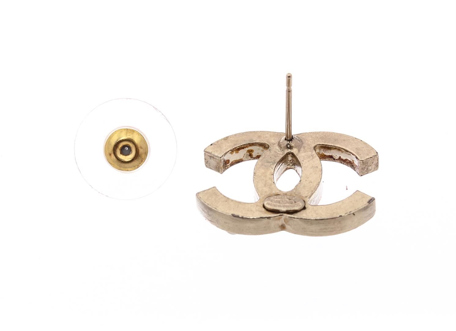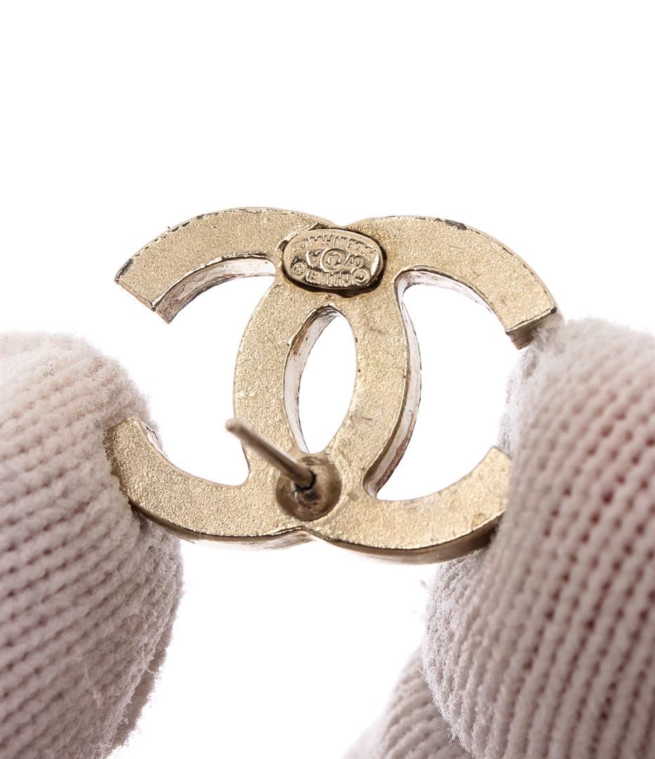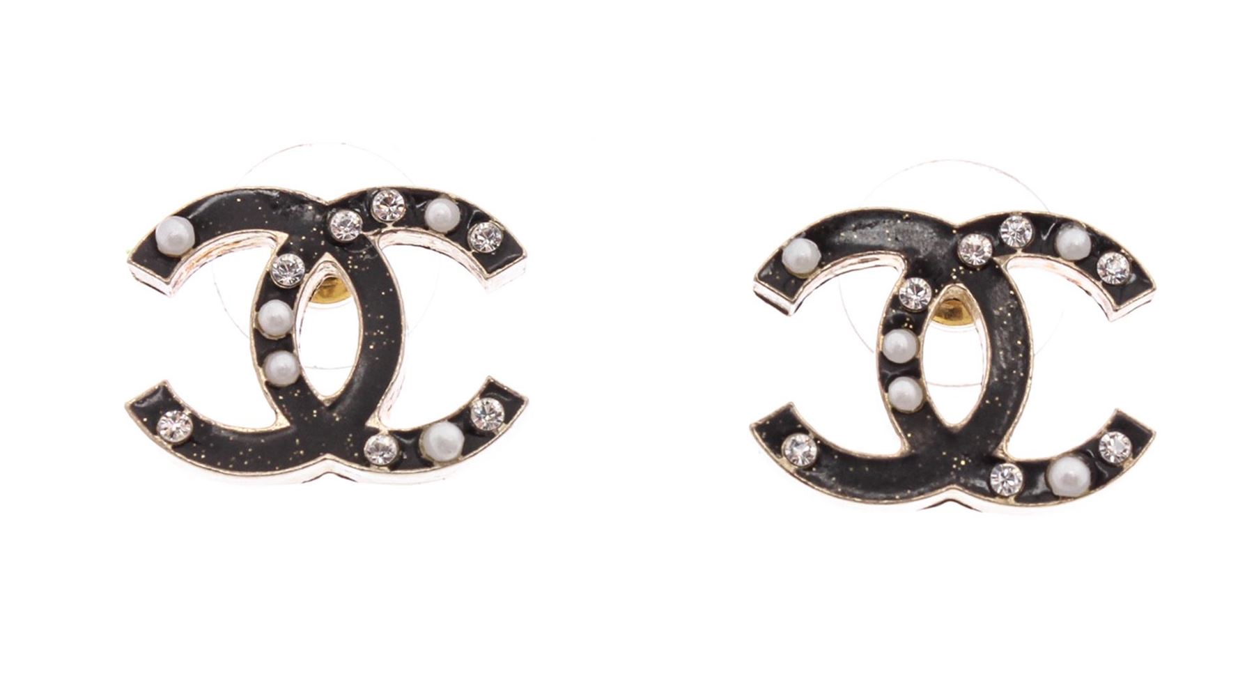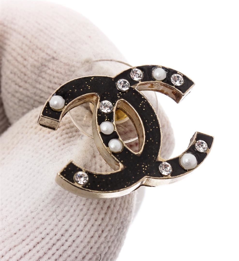 Crystal and Faux Pearl Chanel black enamel CC earrings with clutch back closure.