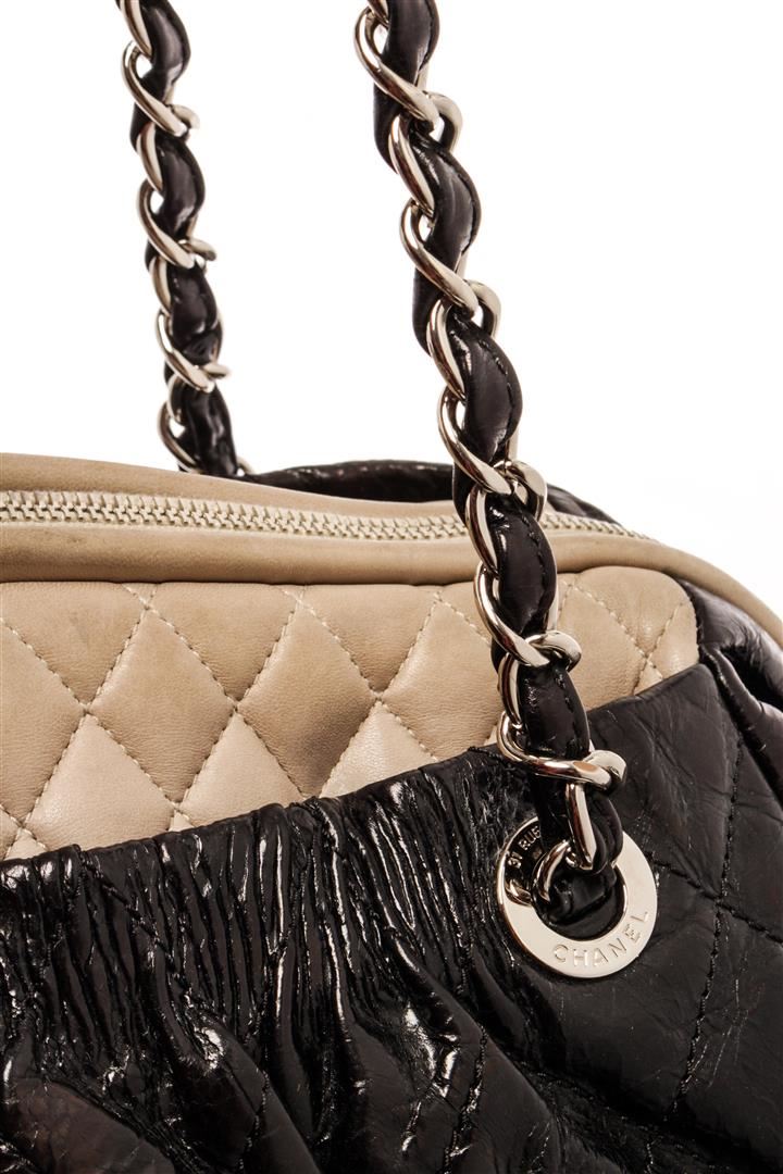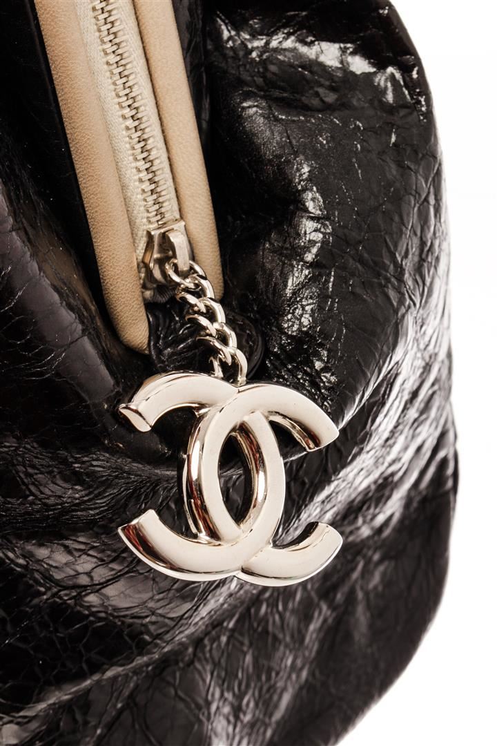 Chanel Black Leather Chain Tote Bag. All available information is listed in the description and shown in the photos. chanel black leather chain tote bag with gold-tone hardware, chain-link shoulder strap, full lining, top zip fastening. Height: 20.32 cm (8 in), Width: 19.05 cm (7.5 in), Depth: 3.81 cm (1.5 in)