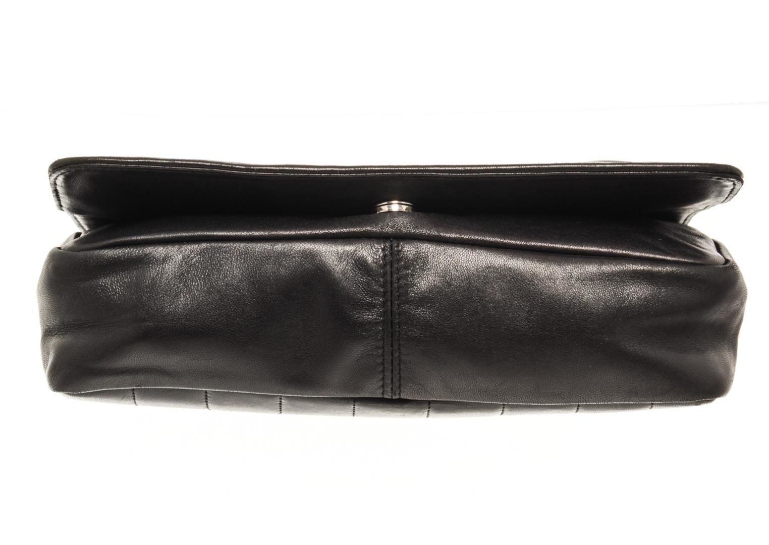 One Chanel Black Leather Chocolate Bar Shoulder bag. Item is sold AS-IS. All available information is listed in the description and shown in the photo. Chanel Black Leather Chocolate Bar Shoulder bag with material leather, silver-tone hardware, chain/leather shoulder strap, interior pocket, fabric interior, snap closure. H4.5 X W8 X D1.5 inches Strap drop(Single) : 13 inches Strap drop(double) : 7 inches H11 X W20 X D4 cm