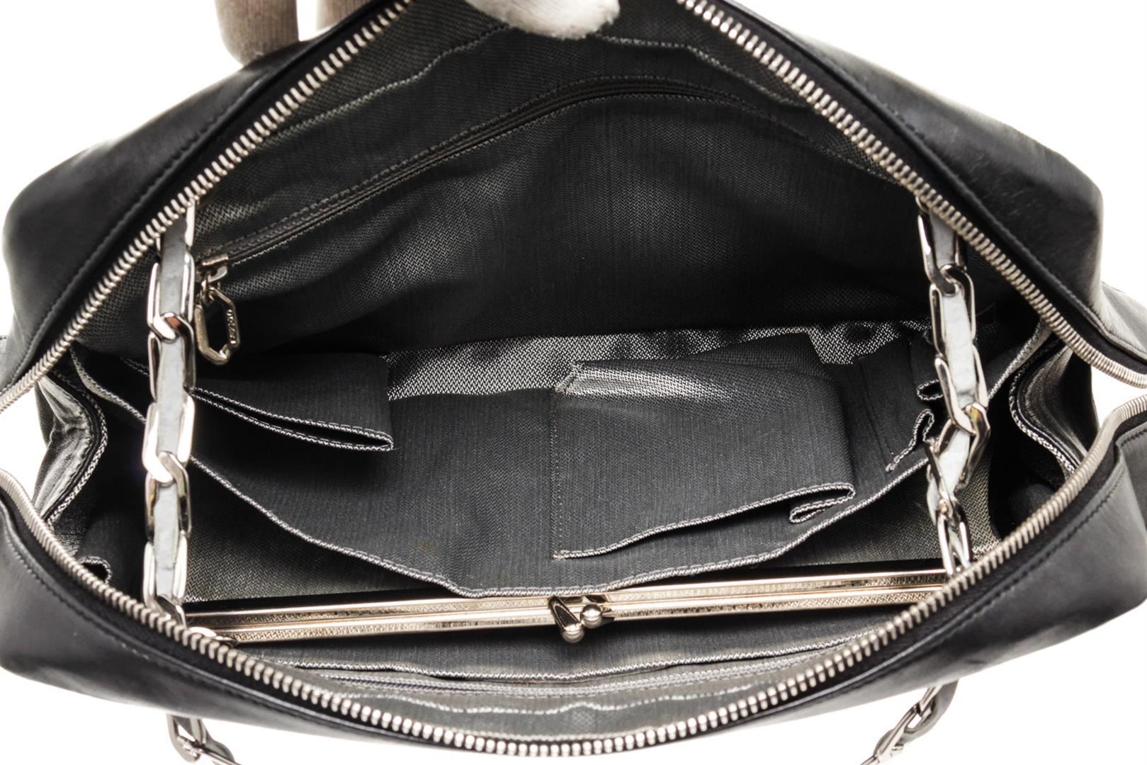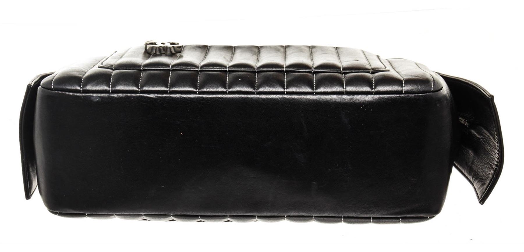 One Chanel Black Leather Mademoiselle Shoulder Bag. Item is sold AS-IS. All available information is listed in the description and shown in the photo. Chanel Black Leather Mademoiselle Shoulder Bag with leather, silver-tone hardware, trim leather, interior zip slip pocket, chain shoulder strap and zipper closure.