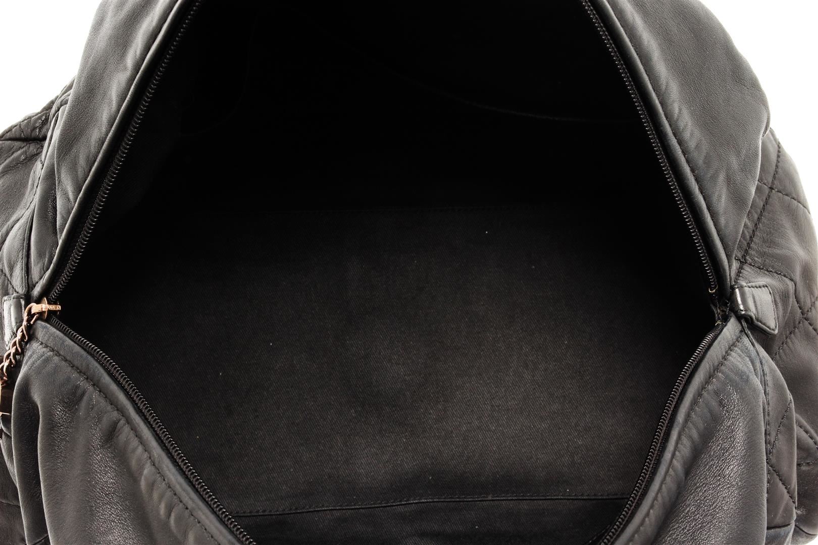 One Chanel Black Quilted Lambskin Cloudy Bundle Bowler Bag. Item is sold AS-IS. All available information is listed in the description and shown in the photo. Chanel black quilted lambskin Cloudy Bunder bowler bag with black leather exterior, black fabric lining, feet at the bottom of the bag to enable it to stand, gold-tone hardware, zipper closure, and CC interlocking logo as zipper tab. Measurements: Handle Drop 10", Height: 8.5 in (21.59 cm), Width: 16.5 in (41.91 cm), Depth: 6 in (15.24 cm)