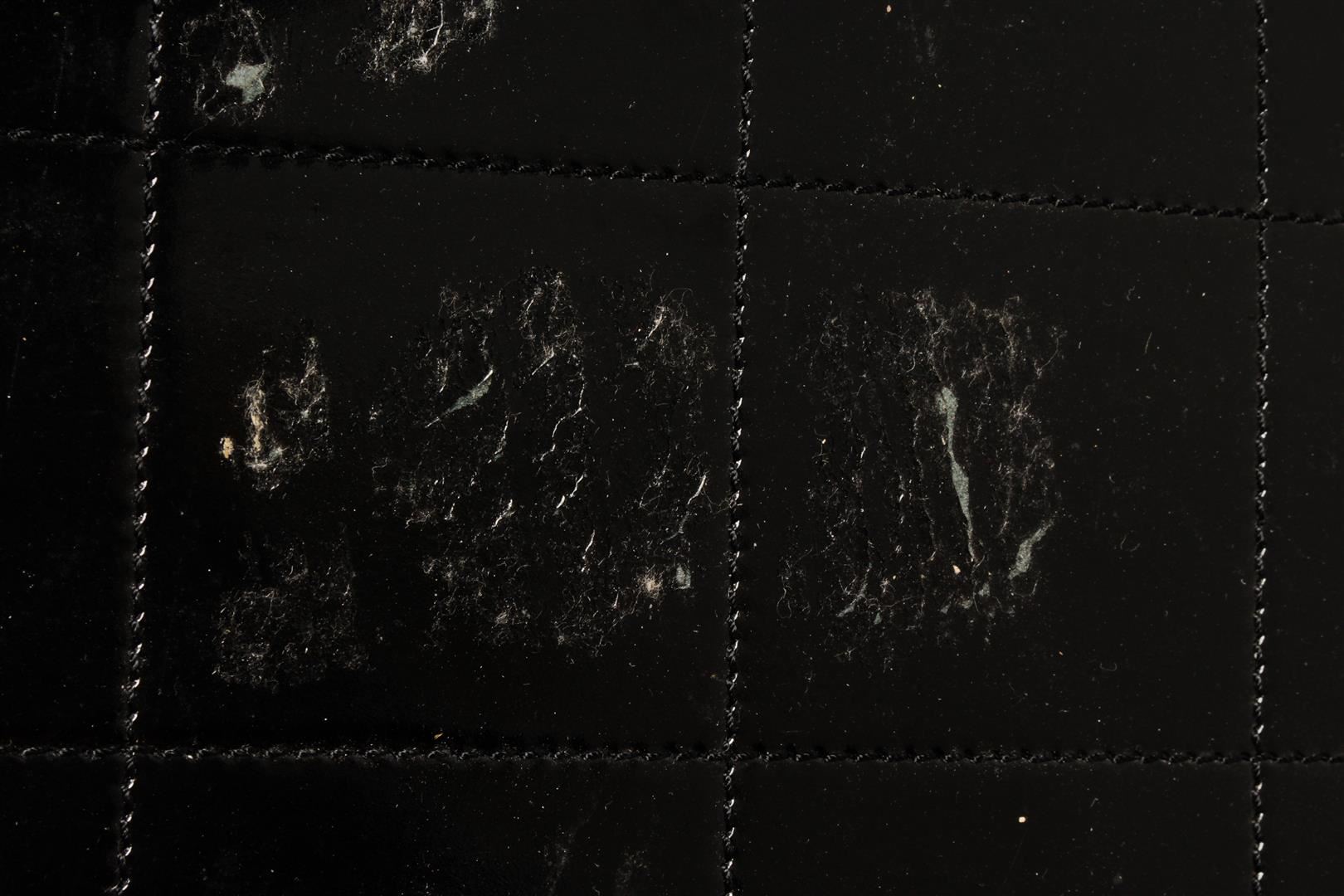 One Chanel Black Red Graphic Print Vintage Mademoiselle Tote Bag. Item is sold AS-IS. All available information is listed in the description and shown in the photo. Chanel Black Red Graphic Print Vintage Mademoiselle Tote Bag with patent leather trim, interior black canvas lining, interior slip and zip pockets, dual flat top handles, and open closure. Please note: scratches and material burn on bay of bag, please see photographs. .