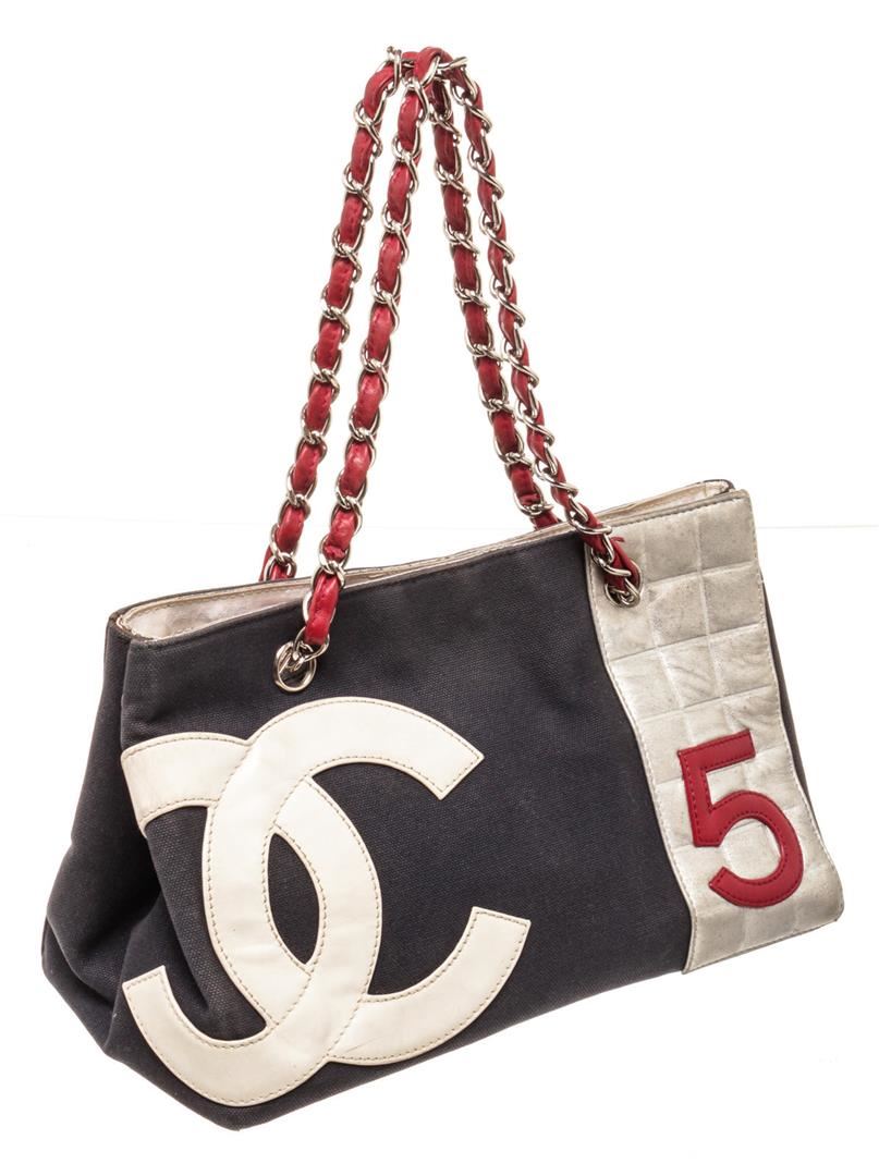 Chanel Black White Denim CC Shopper Tote Bag. All available information is listed in the description and shown in the photos. Chanel Black White Denim CC Shopper Tote Bag with leather, gold-tone hardware, trim tan vachetta leather, interior slip pocket, chain shoulder strap and flap closure.