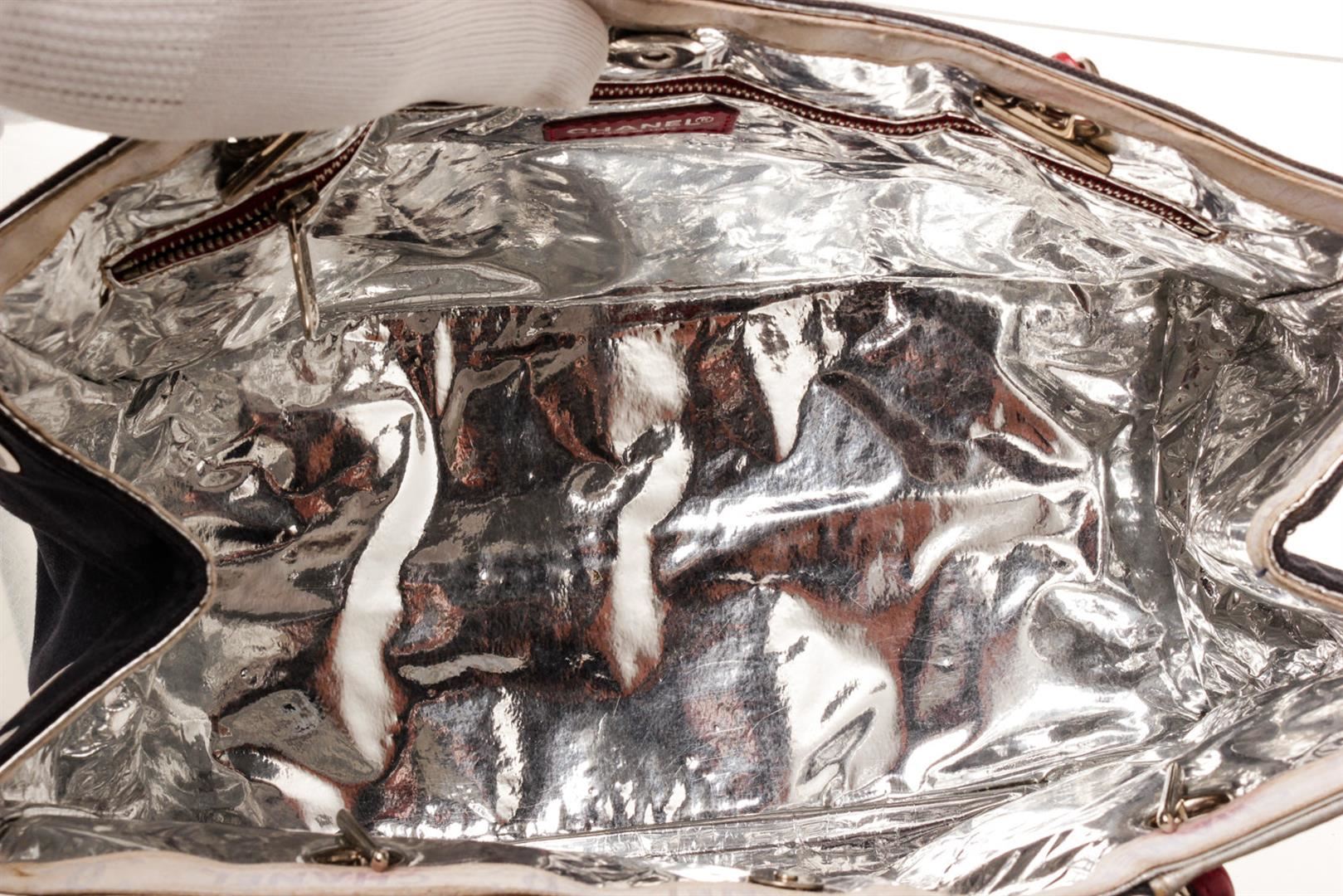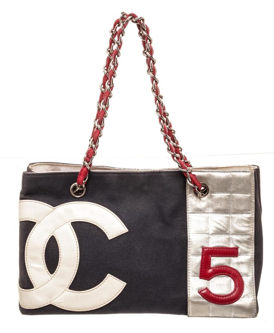 Chanel Black White Denim CC Shopper Tote Bag. All available information is listed in the description and shown in the photos. Chanel Black White Denim CC Shopper Tote Bag with leather, gold-tone hardware, trim tan vachetta leather, interior slip pocket, chain shoulder strap and flap closure.