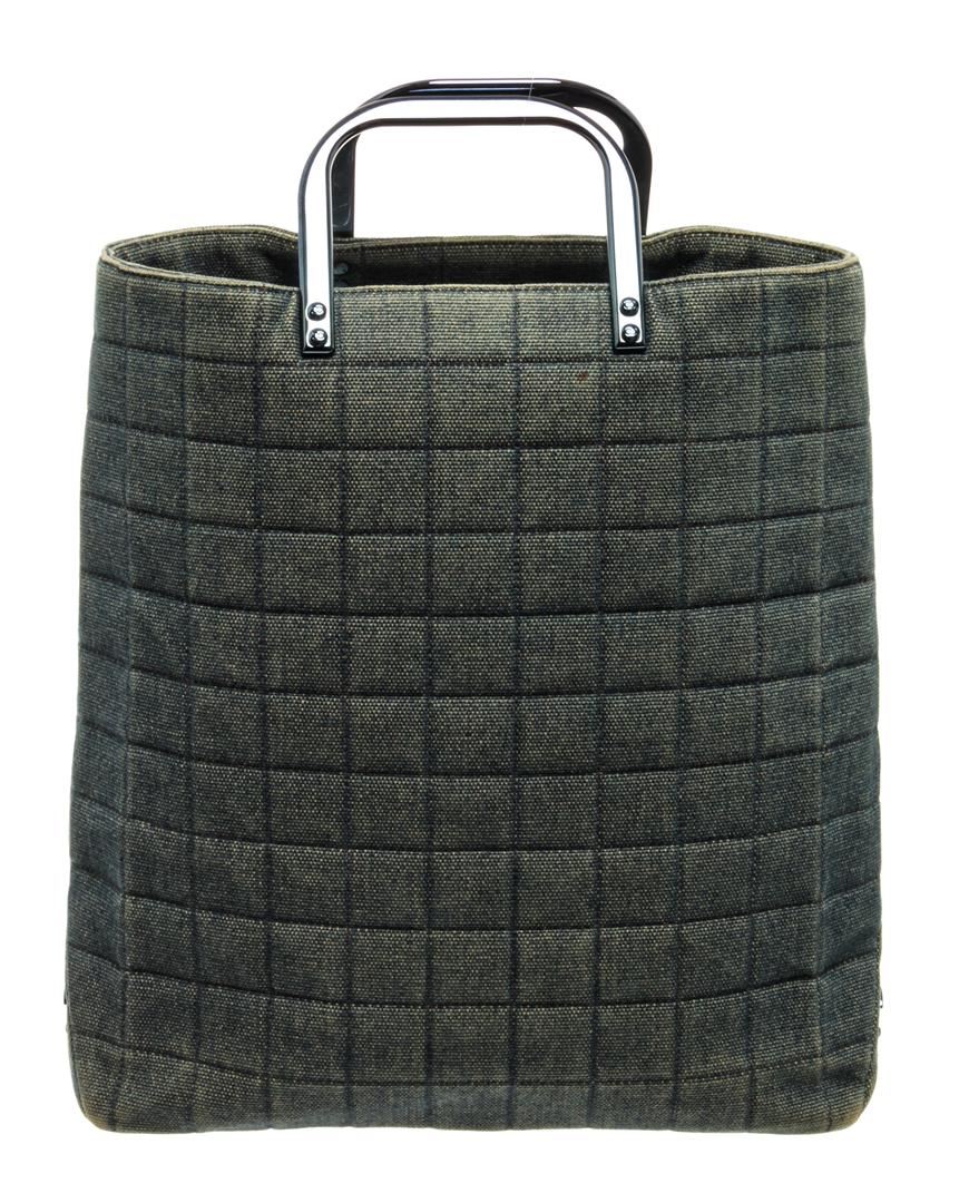 One Chanel Blue Denim Flat Quilted Tote Bag. Item is sold AS-IS. All available information is listed in the description and shown in the photo. Chanel Blue Denim Flat Quilted Tote Bag. Features silver hardware, blue denim exterior, tan leather interior, black metal straps, and a button closure.