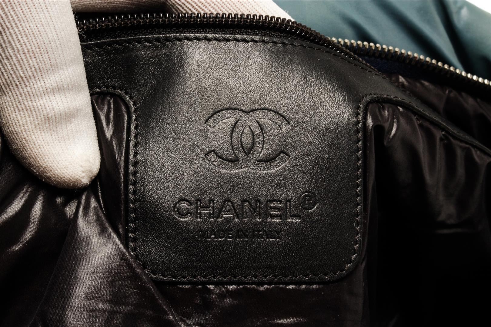 One Chanel Blue Quilted Nylon Cocoon Front Zipped Tote Bag. Item is sold AS-IS. All available information is listed in the description and shown in the photo. Chanel Blue Quilted Nylon Cocoon Front Zipped Tote Bag with silver-tone hardware, front zip pocket, black leather lining, dual leather top handles, and zip closure at the top. .