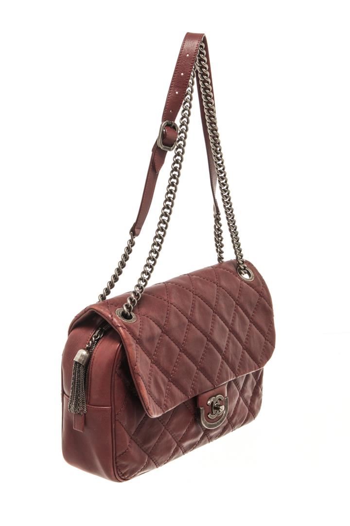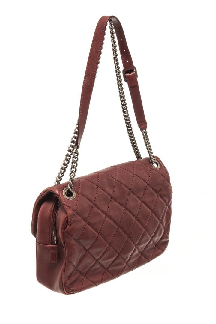 Chanel Burgundy Lambskin Chain Flap Shoulder Bag. All available information is listed in the description and shown in the photos. Chanel burgundy lambskin chain flap shoulder bag with gunmetal hardware.