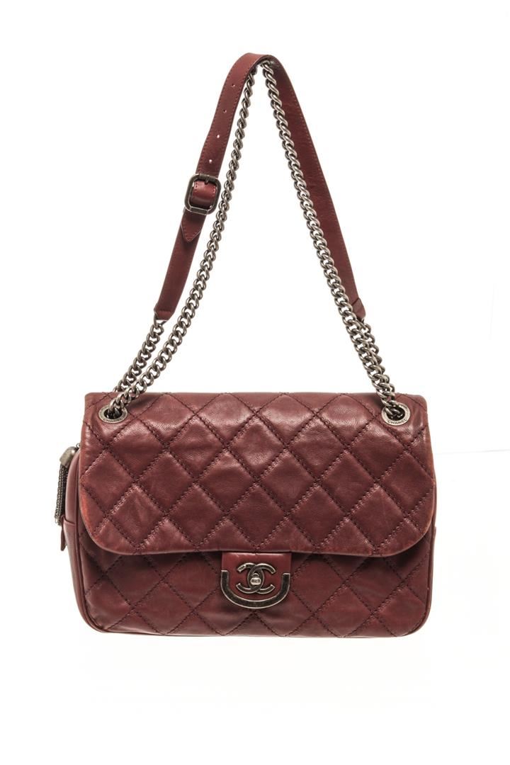 Chanel Burgundy Lambskin Chain Flap Shoulder Bag. All available information is listed in the description and shown in the photos. Chanel burgundy lambskin chain flap shoulder bag with gunmetal hardware.