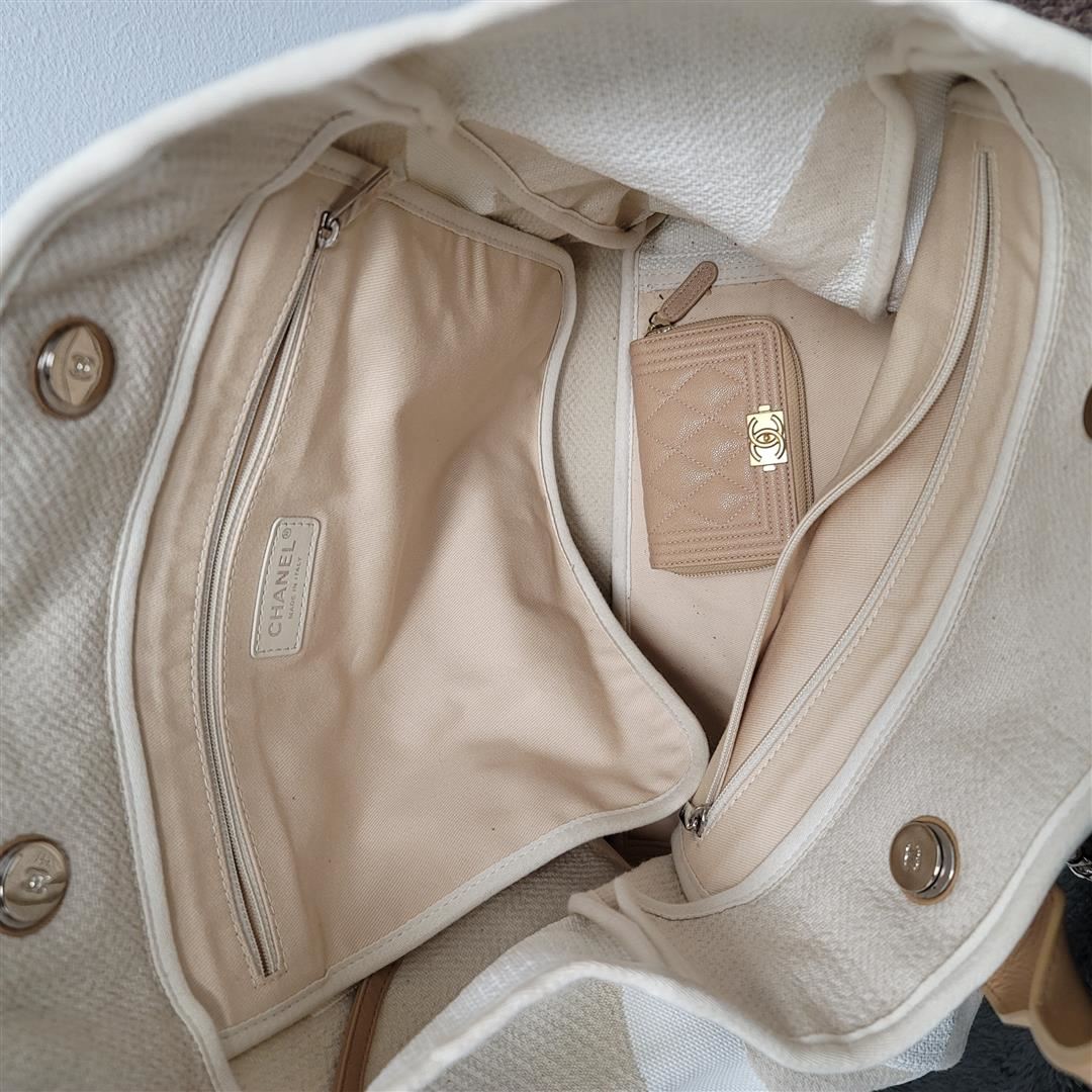 One Chanel CC SHW Canvas Tote Bag in Canvas Cream. Size: W: 38cm H: 38cm x D: 14.5cm (W: 15.0" x H: 15.0" x D: 5.7") Handle: 27cm (10.6") Shoulder: 82 (32.3")