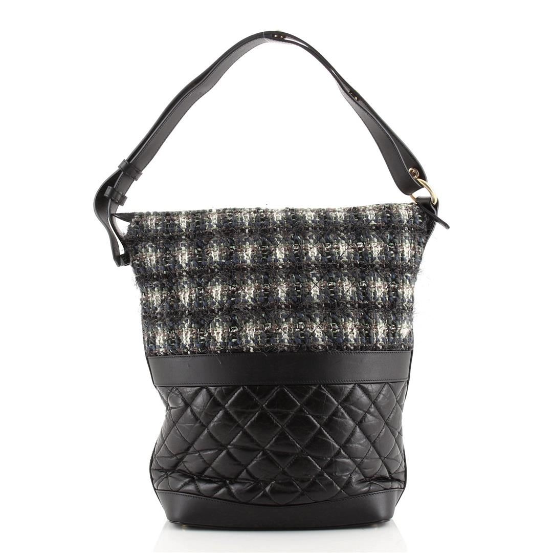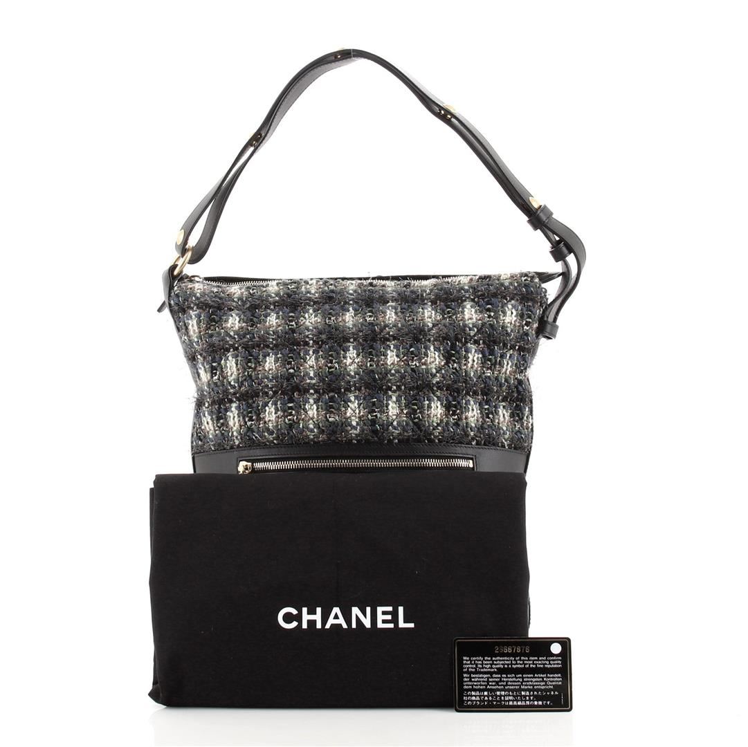 Chanel Casual Style Hobo Tweed and Quilted Aged Calfskin Large Black, Multicolor. All available information is listed in the description and shown in the photos. Chanel Casual Style Hobo Tweed and Quilted Aged Calfskin Large Black Tweed Calfskin