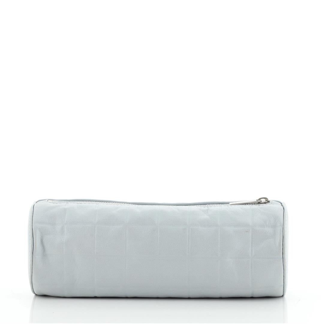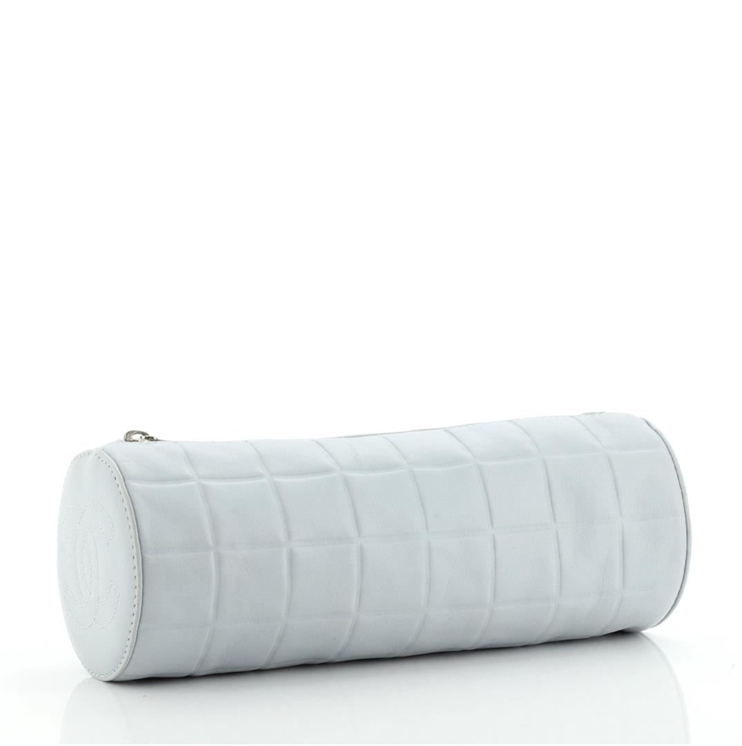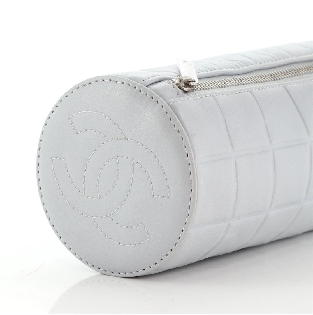 One Chanel Chocolate Bar Cosmetic Pouch Quilted Lambskin Medium Blue. Item is sold AS-IS. All available information is listed in the description and shown in the photo. Chanel Chocolate Bar Cosmetic Pouch Quilted Lambskin Medium Blue Quilted Lambskin Condition Details: Wear, creasing and small marks on exterior. Wear, marks and glue stain in interior, scratches on hardware.