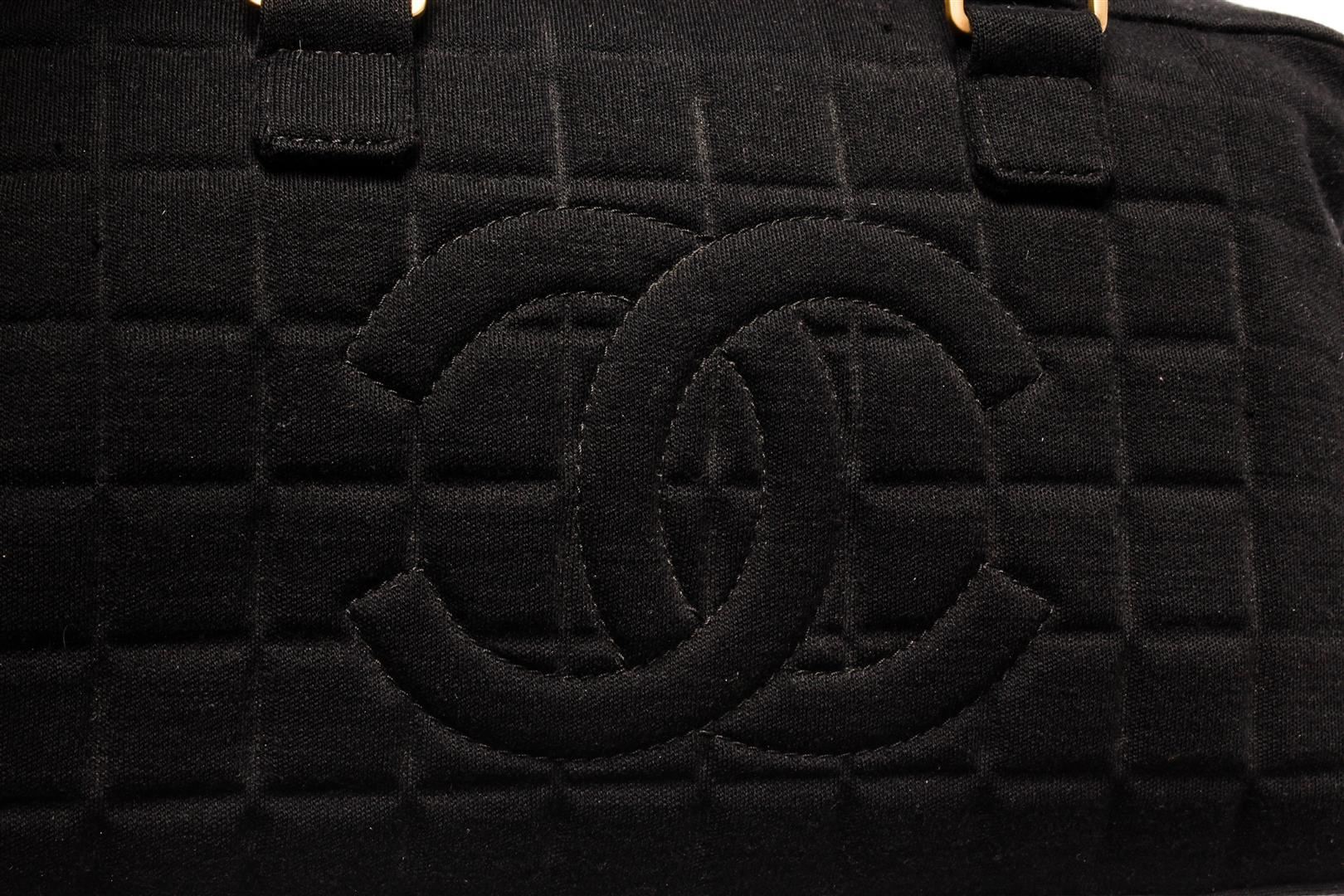 One Chanel Chocolate Bar Suede Boston Shoulder Bag. Item is sold AS-IS. All available information is listed in the description and shown in the photo. Chanel Chocolate Bar Suede Boston Shoulder Bag. Features gold hardware, black canvas interior, black suede straps, and a gold zipper closure.