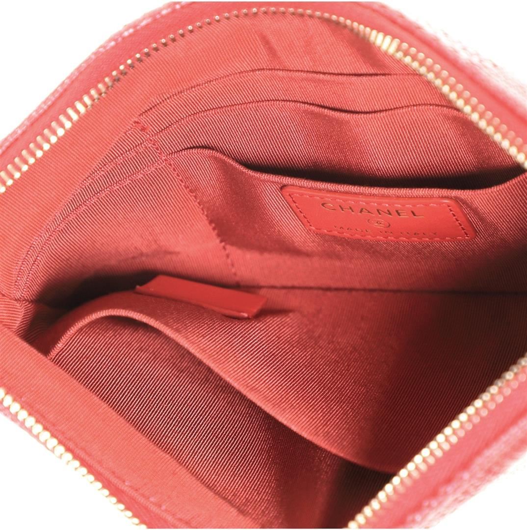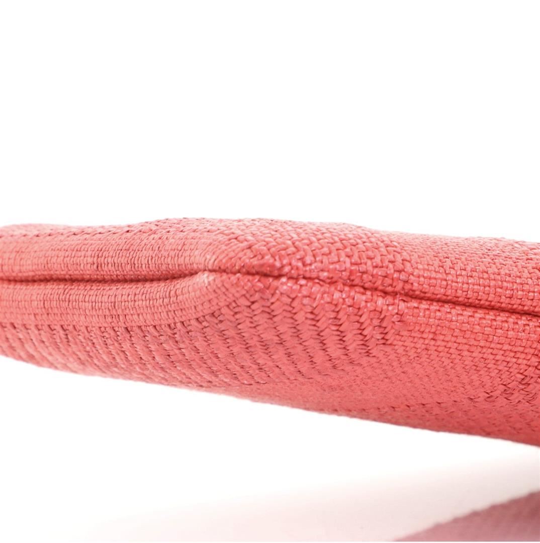 One Chanel Deauville Pouch Striped Mixed Fibers Small Red. Item is sold AS-IS. All available information is listed in the description and shown in the photo. Chanel Deauville Pouch Striped Mixed Fibers Small Red Fiber Condition Details: Slight odor in interior. Discoloration and wear on exterior corners, scratches on hardware. Height ", Width ", Depth ", Strap Drop -
