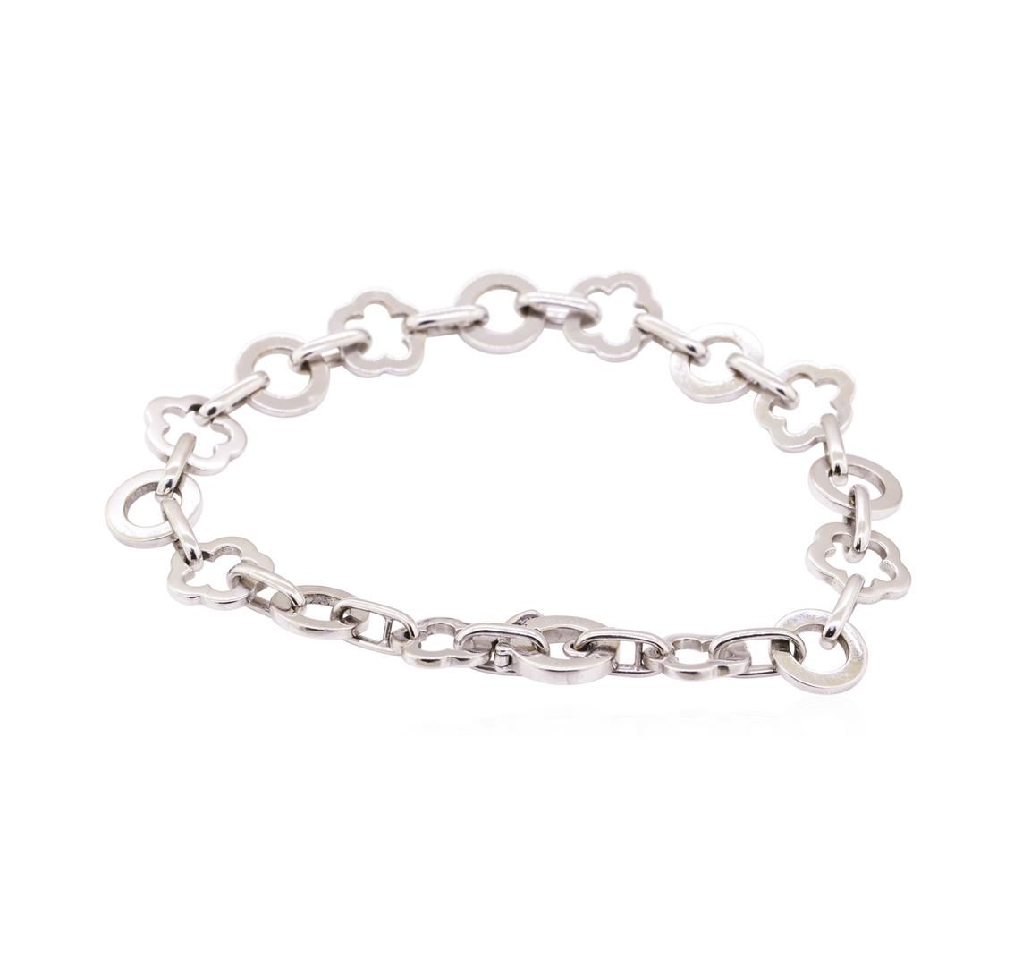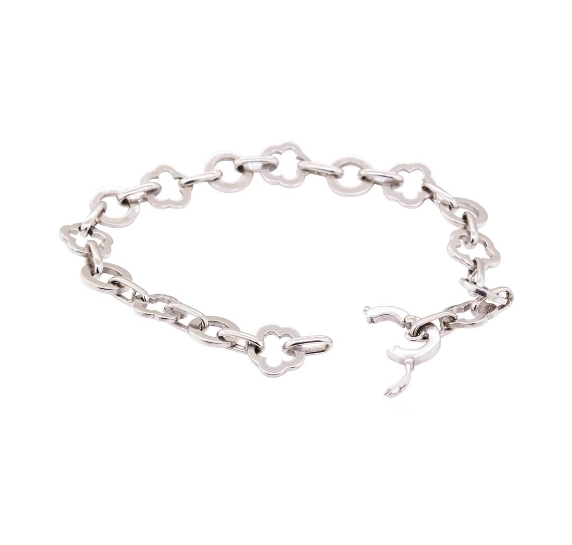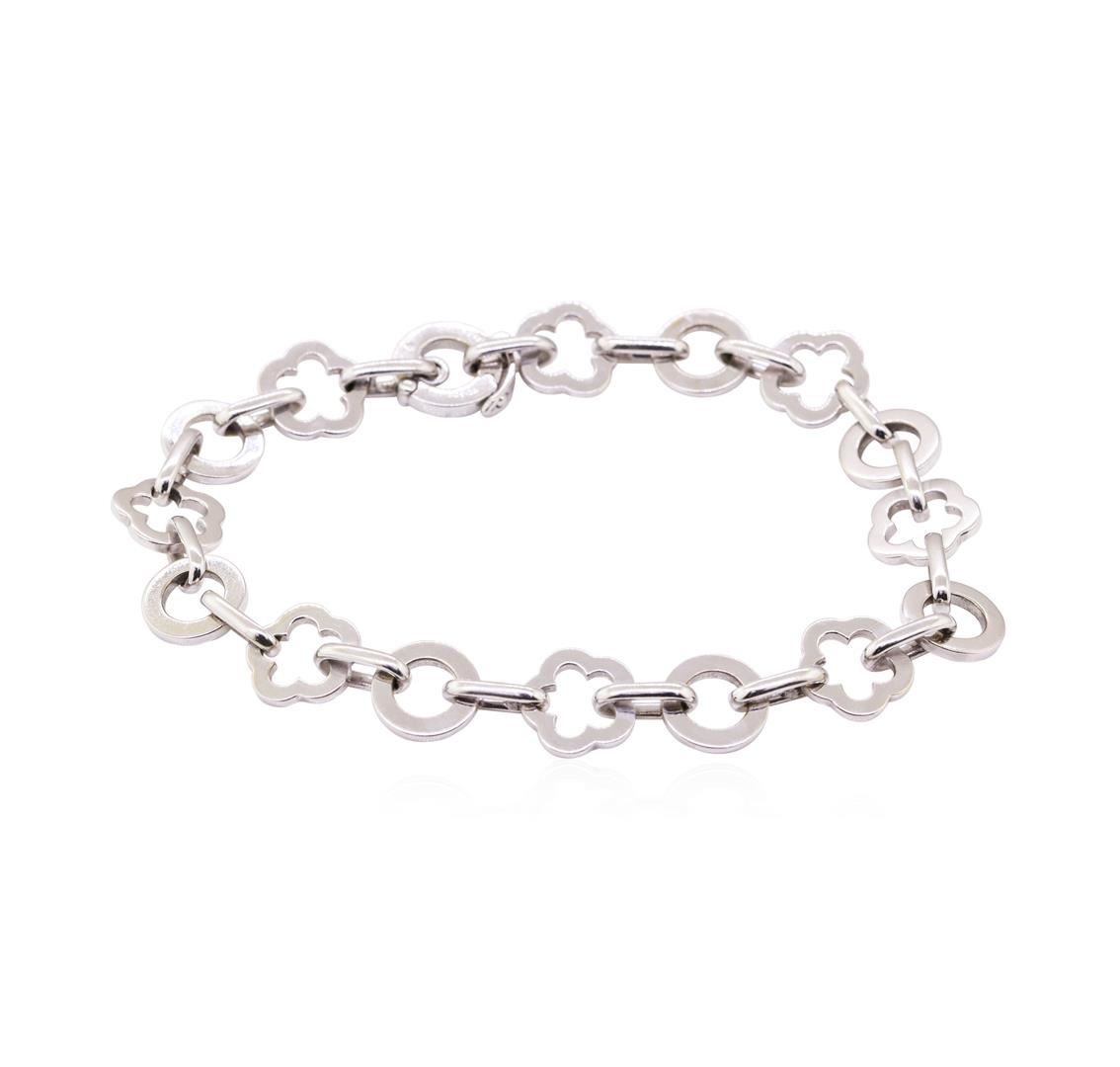 One Chanel Floral Link bracelet featuring: 18KT white gold weighing 29.3 grams. The bracelet measures eight and a half inches in length.