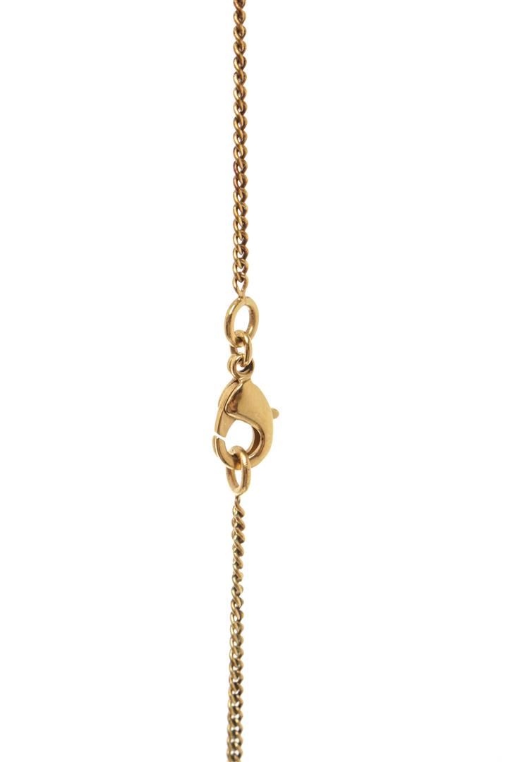 Chanel Gold Gem Long Necklace. All available information is listed in the description and shown in the photos. Chanel gold gem long necklace with gold-tone chain, lobster claw closure, and a clear pink gem pendant with a CC logo dangling.