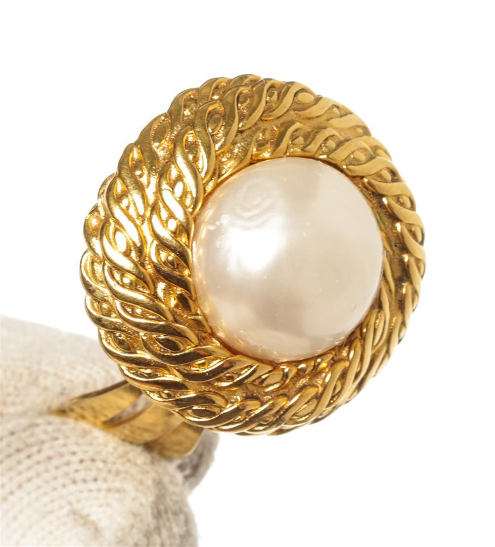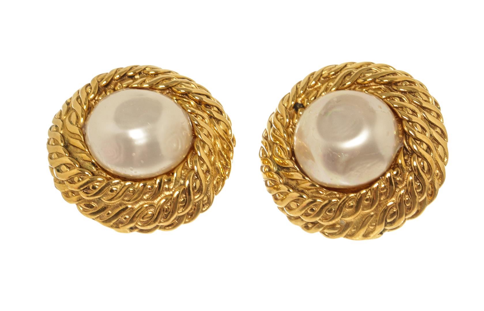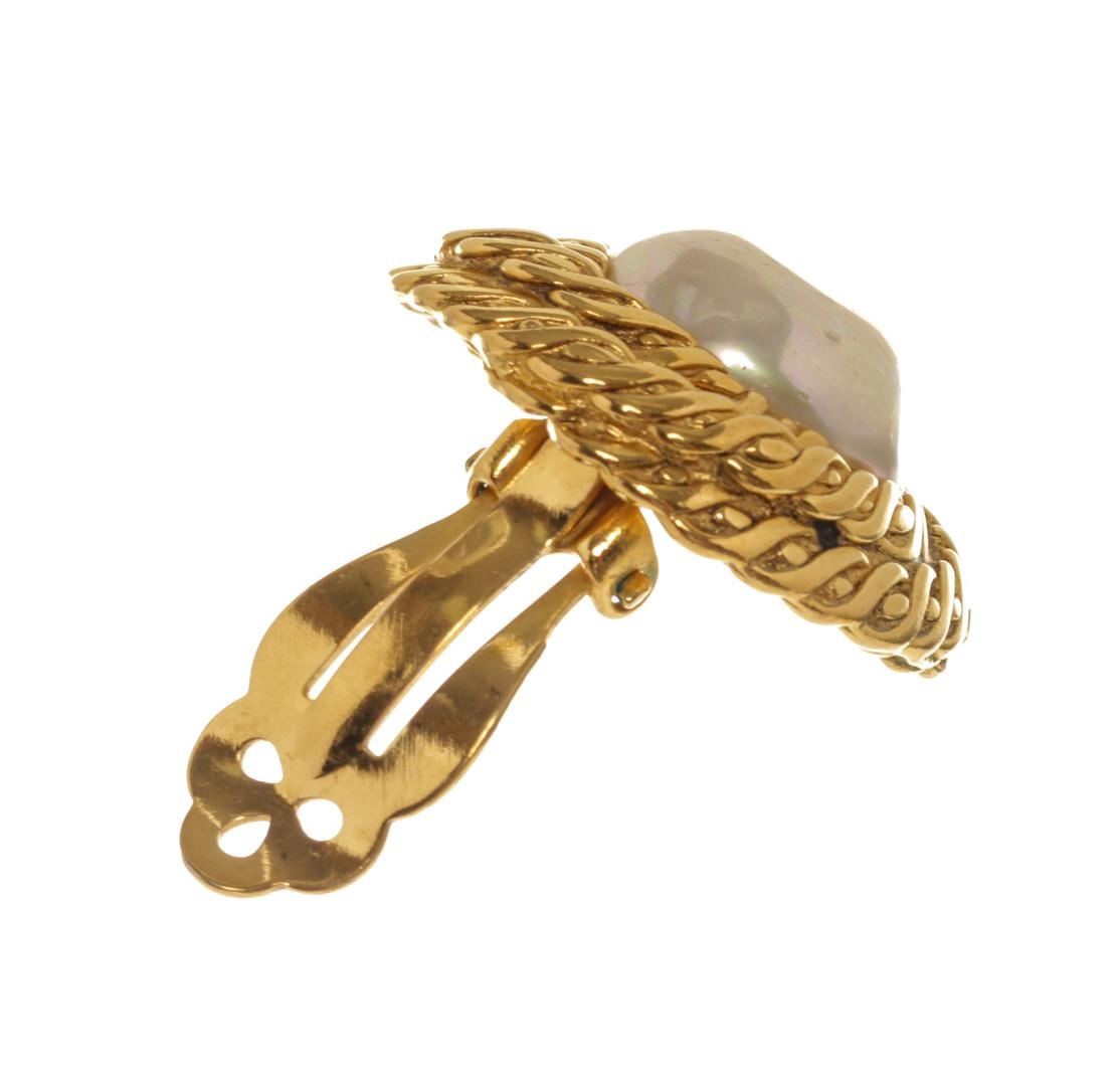 Chanel Gold Tone CC Braided Earrings. All available information is listed in the description and shown in the photos. Chanel Gold Tone CC Braided Earrings with gold tone metal hardware, and a centered faux pearl.