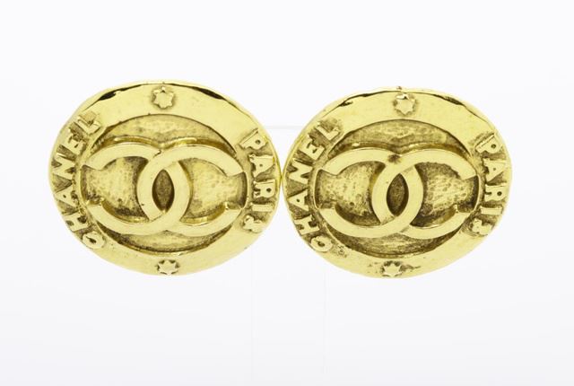 Chanel Gold-tone Metal CC Logo Round Clip-on Earrings