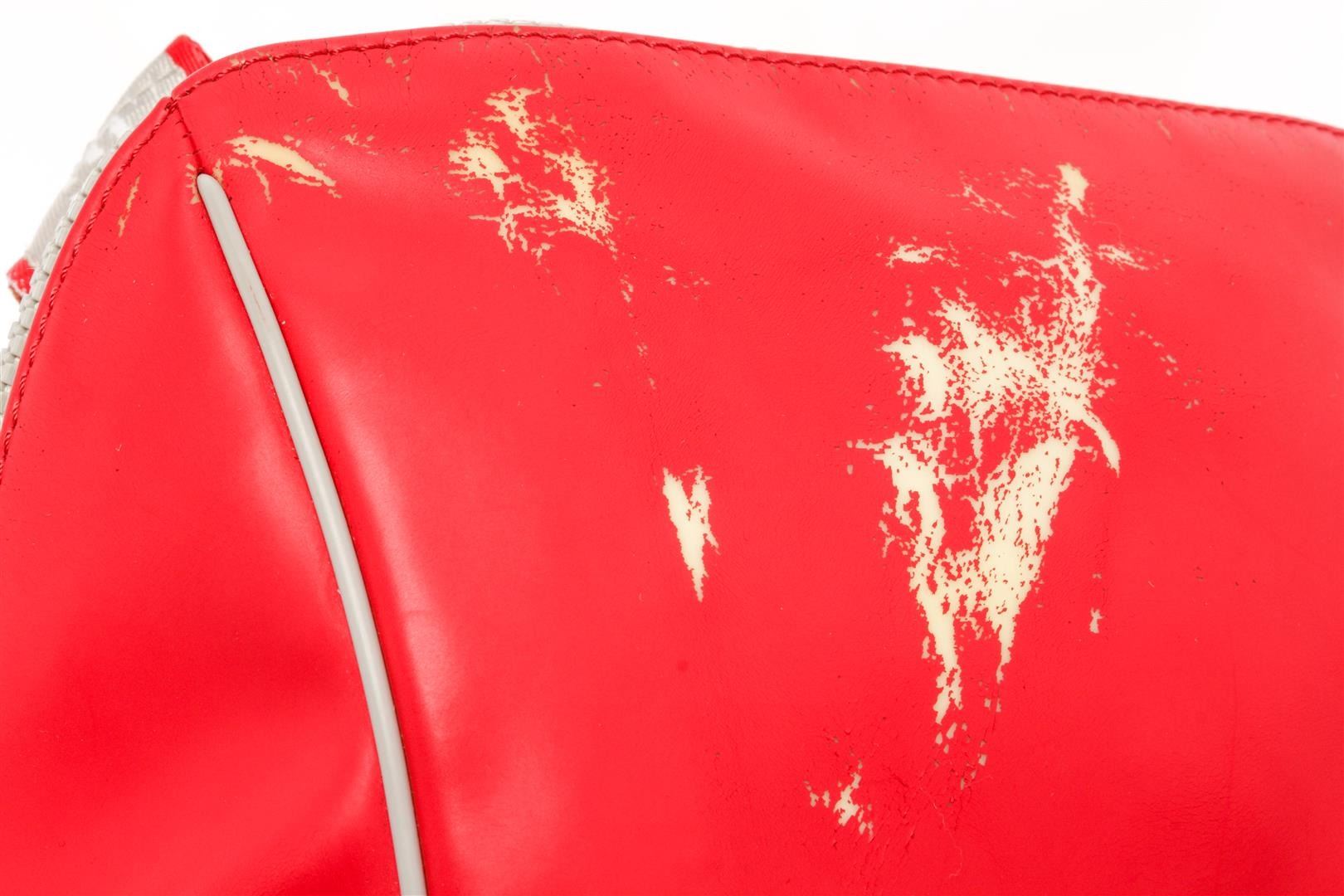 Chanel Line Bag Backpack. Brand: Chanel, Style: Line Bag, Type: Backpack, Exterior color: Red and Gray, Exterior material: Vinyl, Interior color: Gray, Interior material: Nylon, Length: 10, Width: 2, Height: 15. Item is sold AS-IS and all information pert