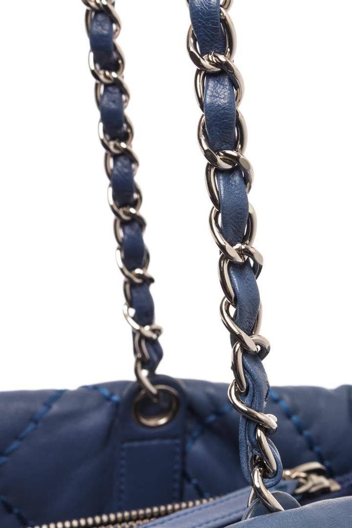 Chanel Navy Blue Quilted Leather Boy Camera Shoulder Bag. All available information is listed in the description and shown in the photos. Chanel Navy Blue Quilted Leather Boy Camera Shoulder Bag with quilted leather and detailed with silver-tone hardware, this bag is designed to easily fit your belongings, you can parade it via the two top handles. Height: 9.65 in (24.5 cm), Width: 5.91 in (15 cm), Length: 13.59 in (34.5 cm)