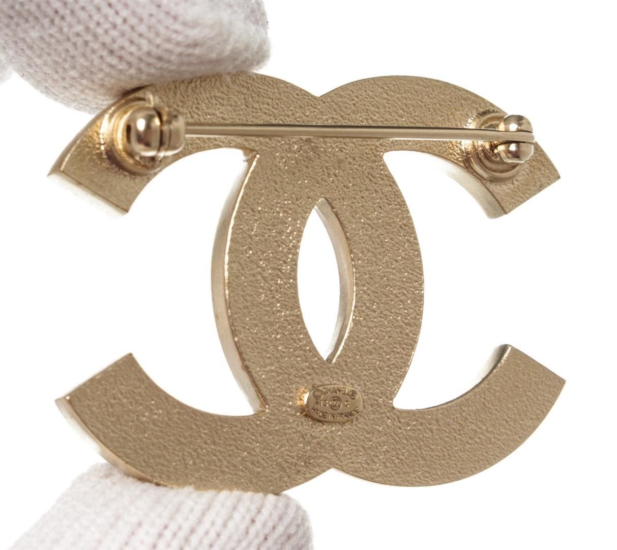 One Chanel Pink White Striped CC Enamel Brooch. Item is sold AS-IS. All available information is listed in the description and shown in the photo. Pink and white stripe Chanel CC enamel brooch features CC logo and gold-tone hardware.