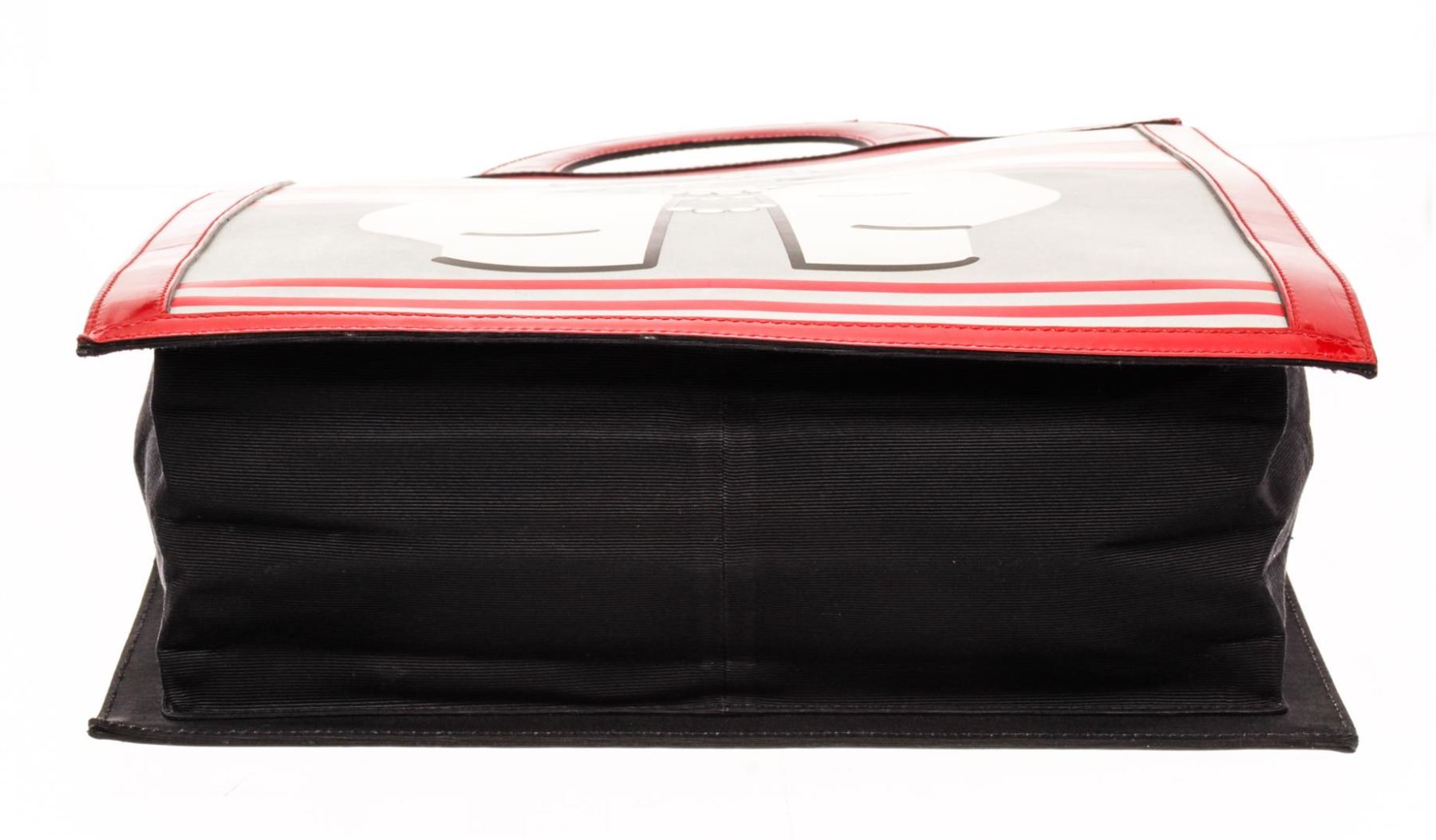 Chanel Portrait Tote Tote. Brand: Chanel, Style: Portrait Tote, Type: Tote, Exterior color: Red/White, Exterior material: Patent Leather, Interior color: Black, Interior material: Canvas, Length: 12 5/8", Width: 1", Height: 16 3/4". Item is sold AS-IS and