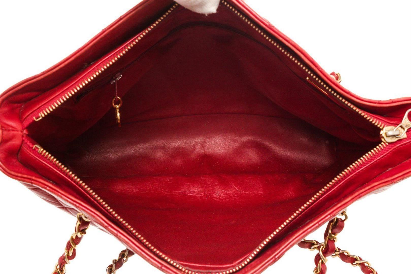 Chanel Red Leather Quilted Chain Shoulder Bag. All available information is listed in the description and shown in the photos. Chanel Red Leather Quilted Chain Shoulder Bag with material leather, gold-tone hardware, interior zip pockets, chain shoulder strap and zipper closure.