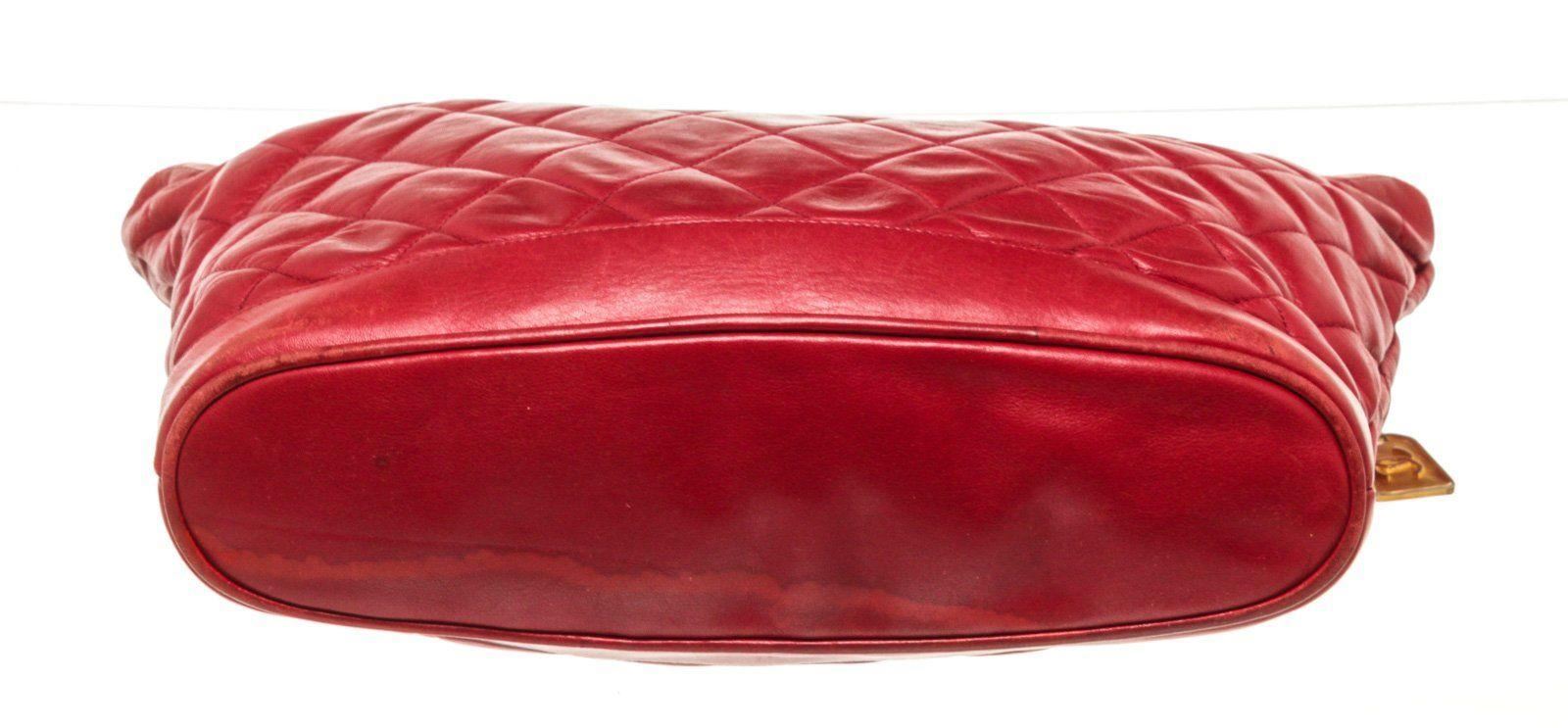 Chanel Red Leather Quilted Chain Shoulder Bag. All available information is listed in the description and shown in the photos. Chanel Red Leather Quilted Chain Shoulder Bag with material leather, gold-tone hardware, interior zip pockets, chain shoulder strap and zipper closure.