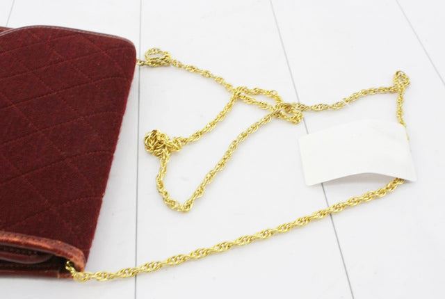 One Chanel Red Quilted Tweed Square Flap Shoulder Bag. Item is sold AS-IS. All available information is listed in the description and shown in the photo. Chanel Flap shoulder bag features red quilted tweed body, gold-tone hardware, small interlocking CC logo at front, flap with magnetic snap closure, red leather trim, black canvas lining and long chain-link shoulder strap. Height 13cm Width 17cm Depth 2.5cm