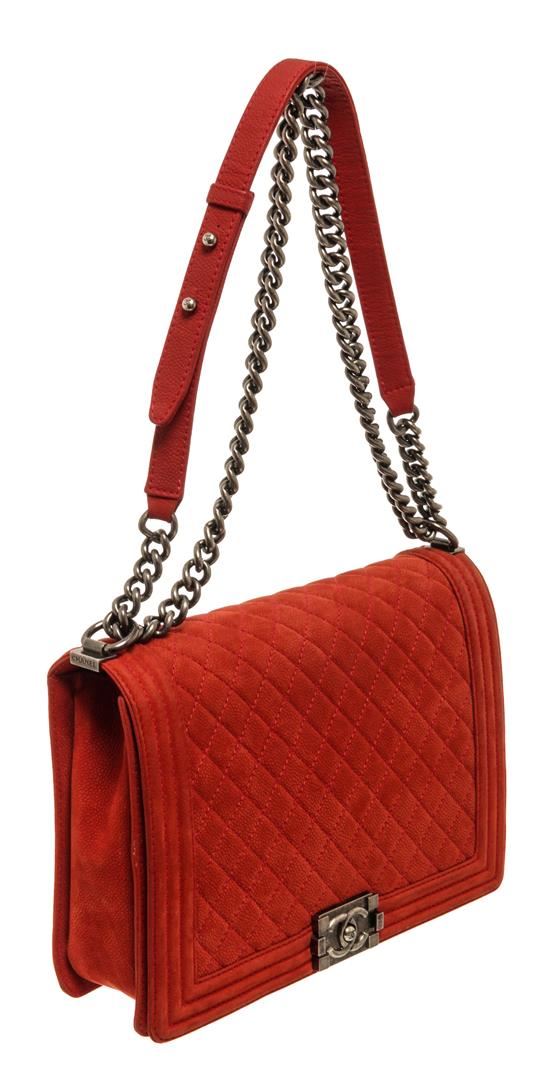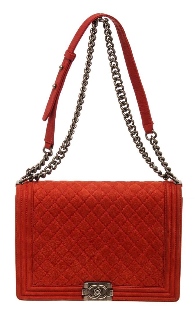 One Chanel Red Soft Matte Caviar Leather Boy Large Flap Bag. Item is sold AS-IS. All available information is listed in the description and shown in the photo. Chanel Red Soft Matte Caviar Leather Boy Large Flap Bag with aged silver-tone hardware, red canvas lining, interior slip and zipper pockets, chain leather shoulder strap, and flap closure with CC push lock. .