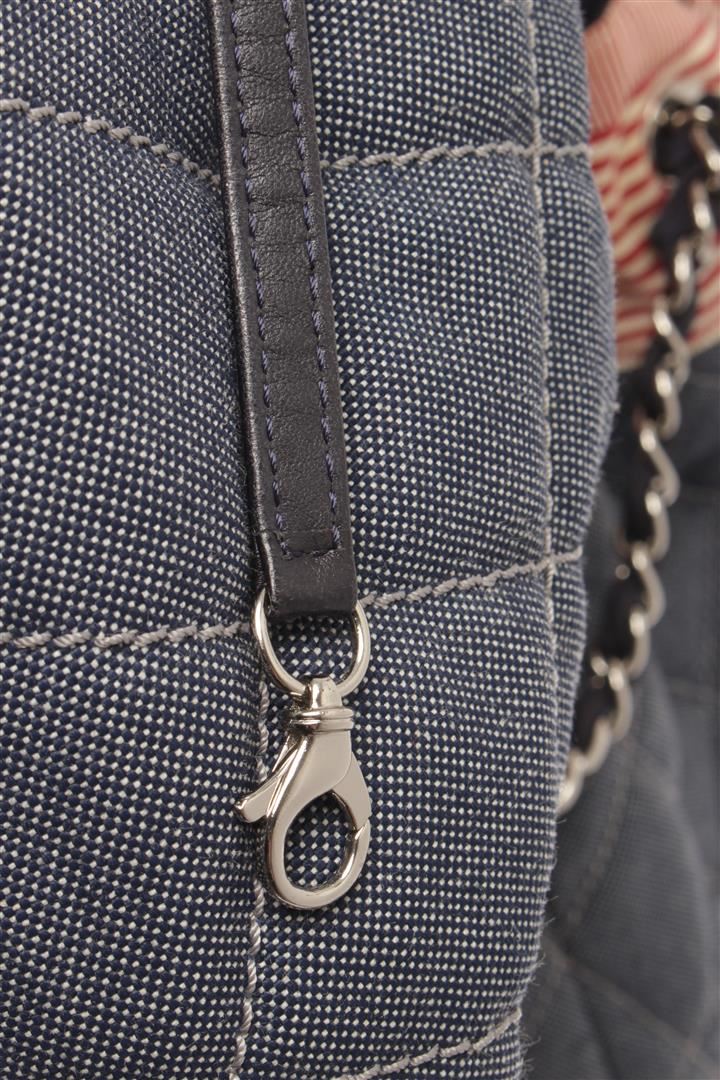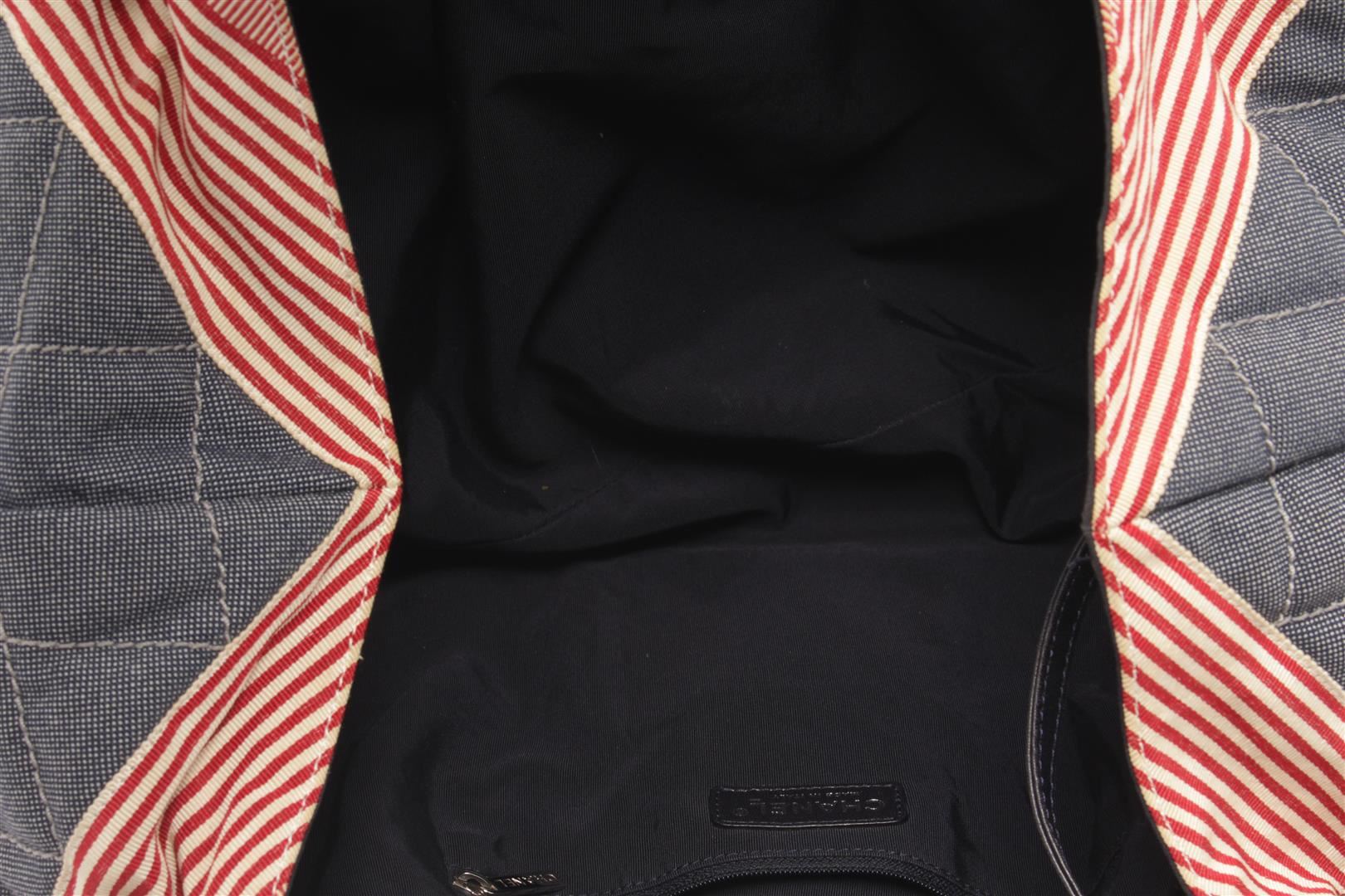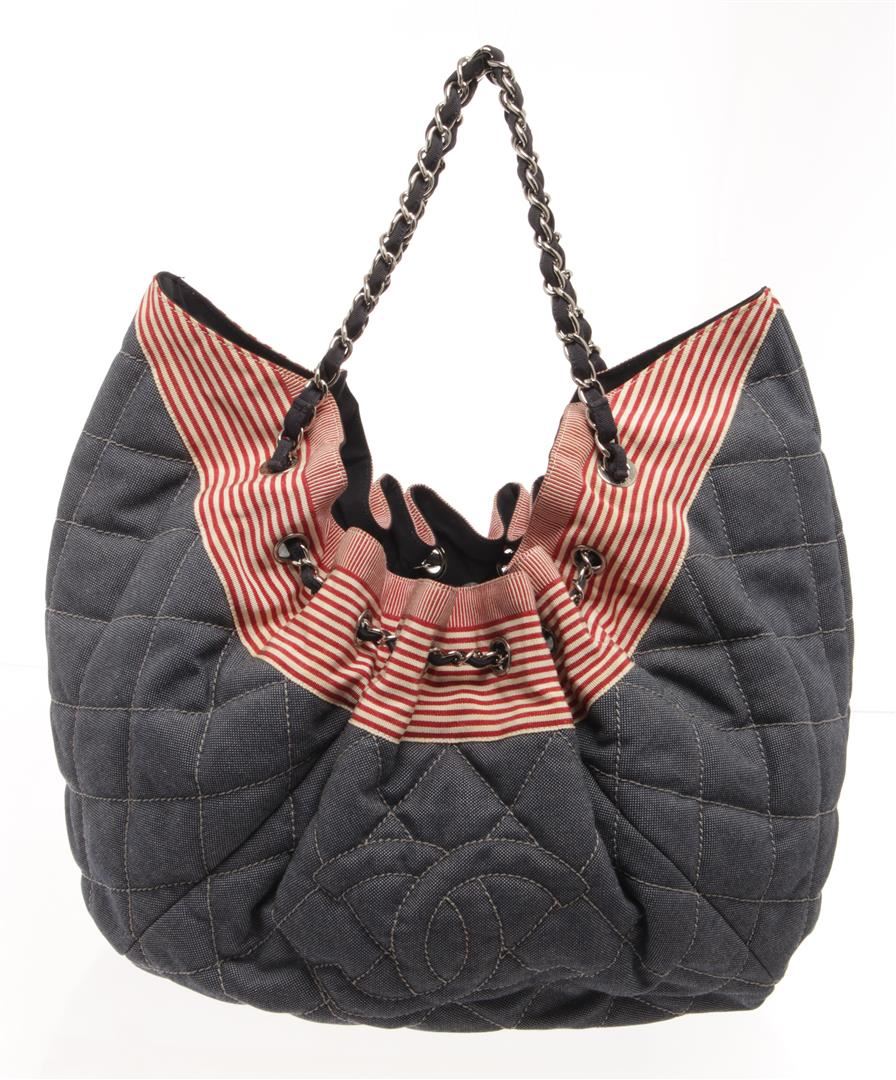 Chanel Red White Coco Cabas GM Stretch Spirit Shoulder Bag. All available information is listed in the description and shown in the photos. chanel stretch spirit cabas bag. made in dark blue denim with embroidered front chanel cc logo. red and white striped upper edge. silver-tone metal chain handles intertwined with blue grosgrain ribbon. Width: 50 cm, Height: 32 cm, Depth: 20 cm / 19.68" x 12.59" x 7.87" Inches