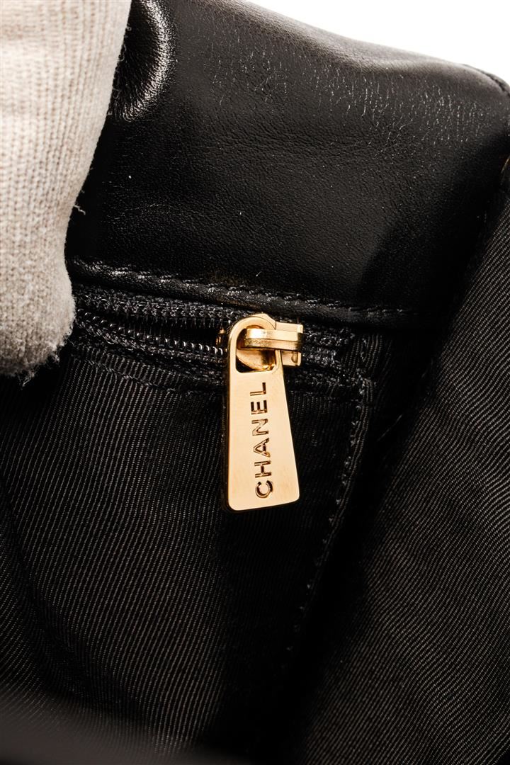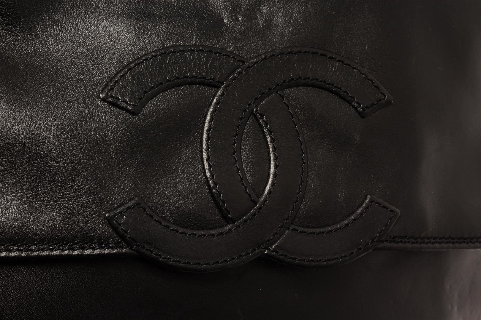 Chanel Vintage Black Leather CC Backpack. All available information is listed in the description and shown in the photos. chanel vintage black leather cc backpack with black, patent leather, diamond quilting, top zip fastening, two leather and chain-link shoulder straps, internal logo patch, internal zip pocket, internal patch pockets, full lining, silver-tone hardware, rectangle body. Depth 5.3 in, Height 13 in, Width 13.4 in / Depth 13.5 cm, Height 33 cm, Width 34 cm