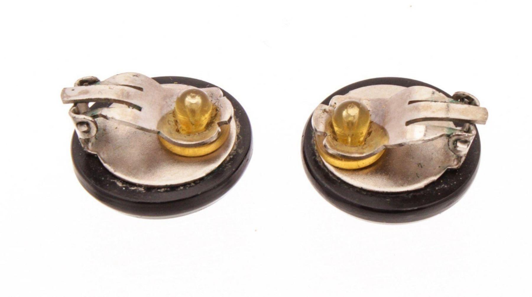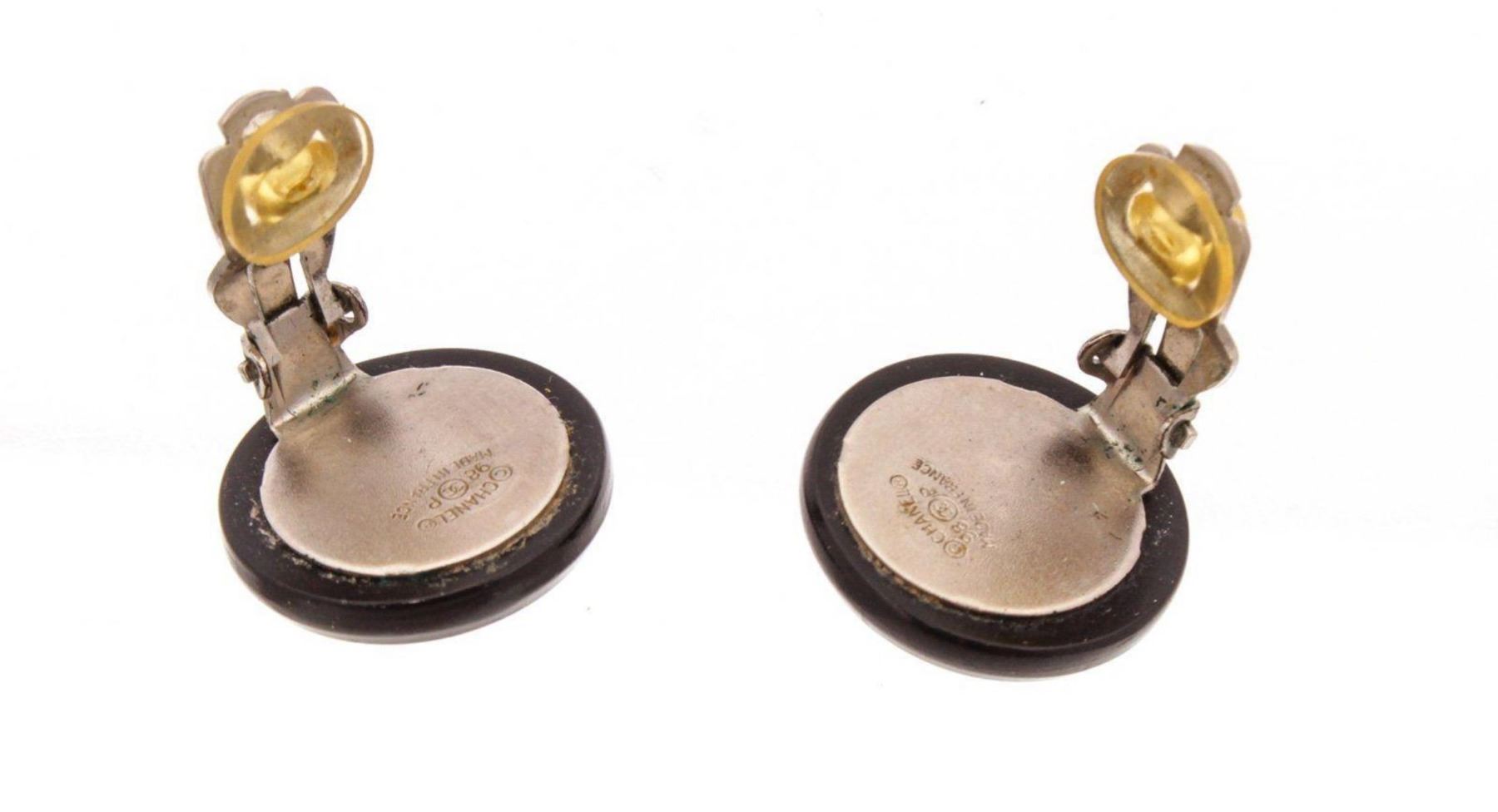 Chanel black resin CC round earrings with clip on backings. MEASUREMENTS: .75 0.75 in / 2 cm .75 0.75 in / 2 cm Condition: Pre-Owned GoodGood overall, please see photographs for detail.