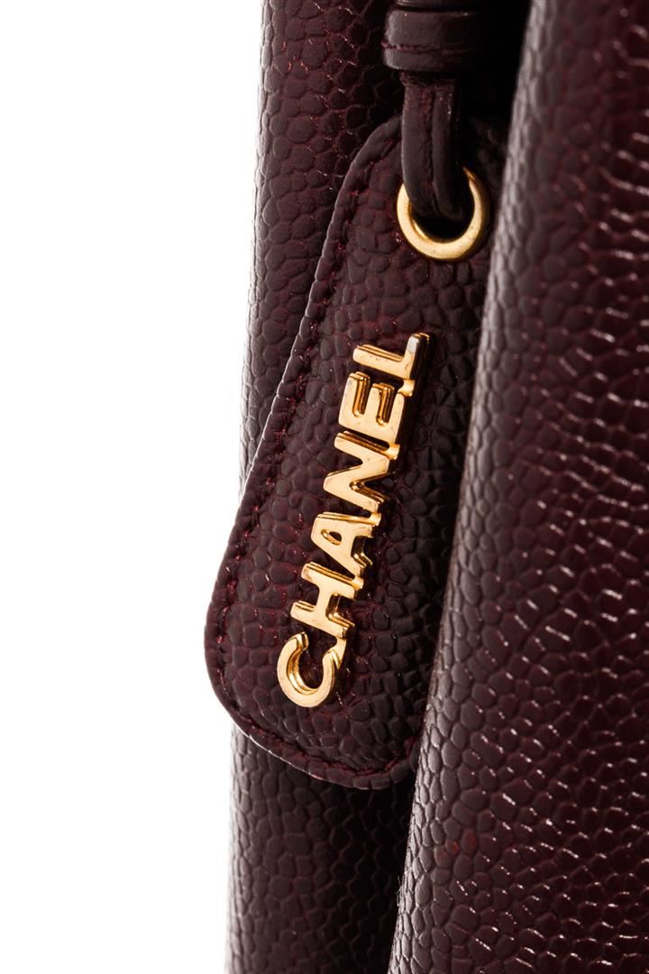Chanel Vintage Burgundy Caviar Leather CC Turn Lock Shoulder Bag. All available information is listed in the description and shown in the photos. Burgundy grained Caviar leather Chanel medium shoulder bag with gold-tone hardware, an envelope-style front pocket with gold-tone interlocking CC turn-lock closure, dual shoulder straps with woven chain-link and leather detail, zipper closure at top that will open to burgundy leather-lined interior with zipped pockets inside. Length: 13" (33 cm) Height: 10.5" (26 cm) Depth: 4.5" (11 cm) Shoulder Strap Drop: 15" (38 cm)