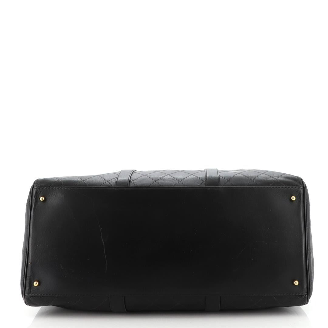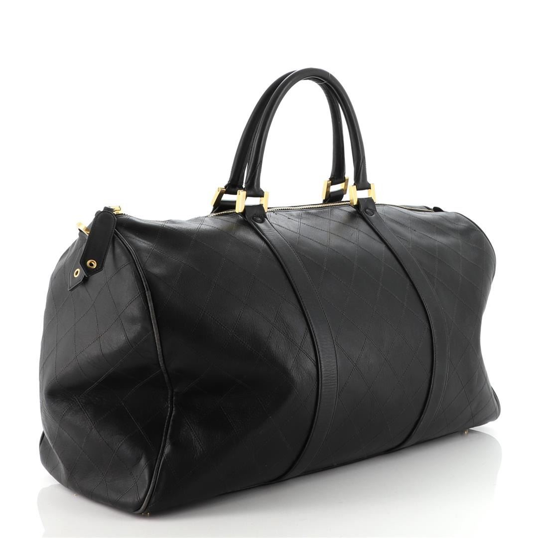 One Chanel Vintage Diamond Stitch Boston Bag Quilted Lambskin Large. Item is sold AS-IS. All available information is listed in the description and shown in the photo. Chanel Vintage Diamond Stitch Boston Bag Quilted Lambskin Large. Creasing, moderate wear and scuffs on exterior, handles and strap, heavy wear on side edges, small nicks front near opening. Minor wear in interior, scratches and discoloration on hardware. 78848